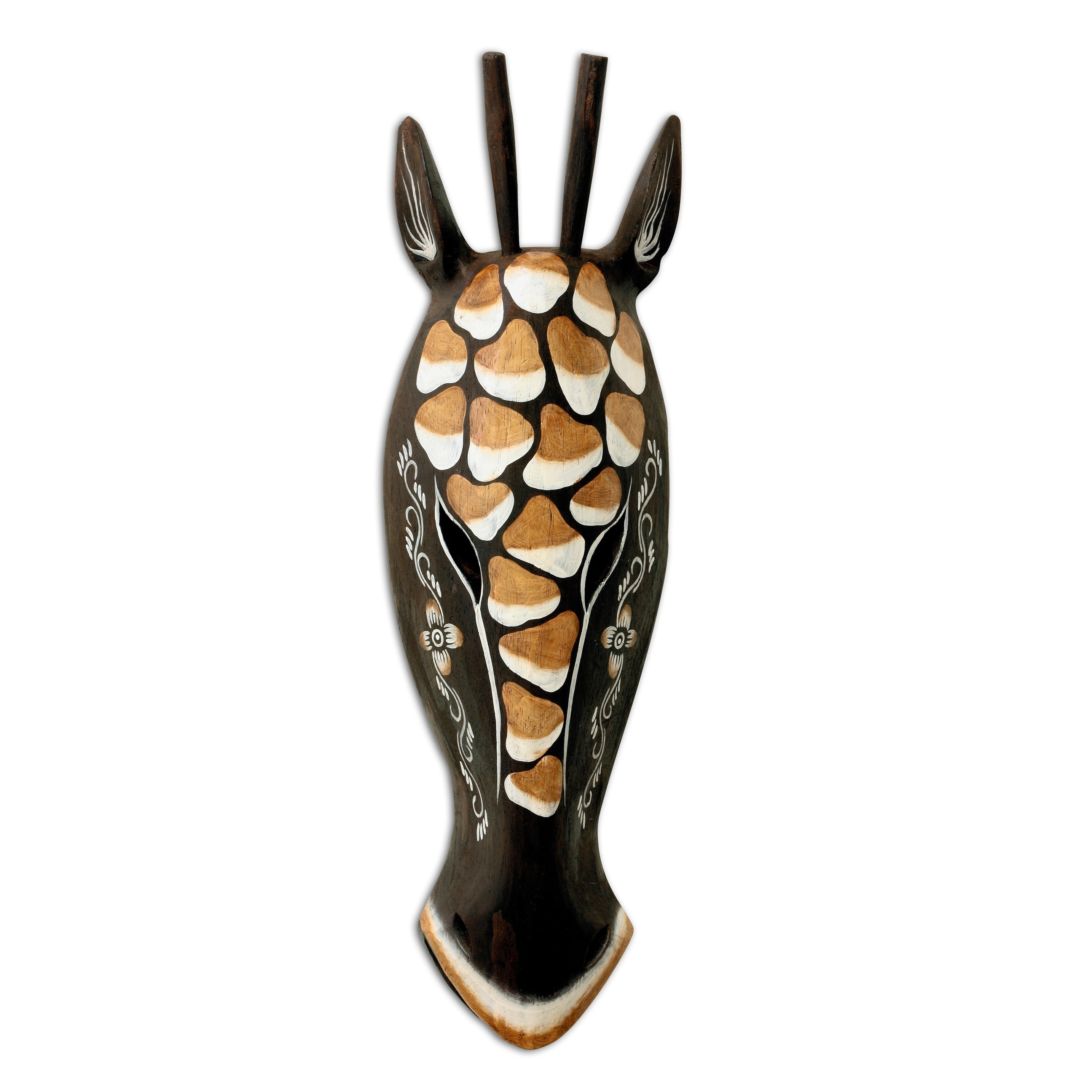 20" African Wooden Tribal Giraffe Mask Hand Carved Wall Plaque Hanging Home Decor Accent Unique Sculpture Decoration Handmade
