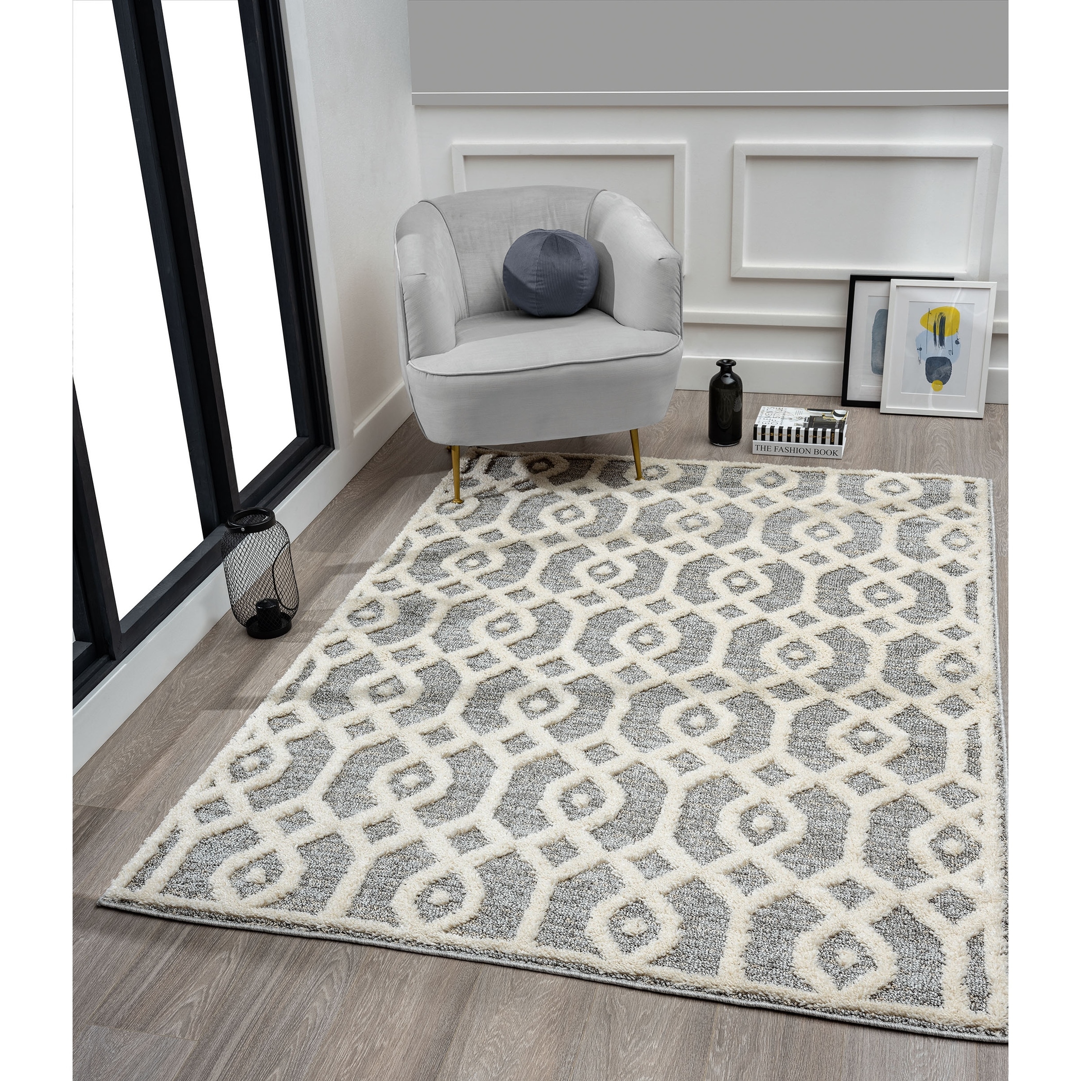Orelsi Collection Abstract Area Rug with Hand Carved Accents