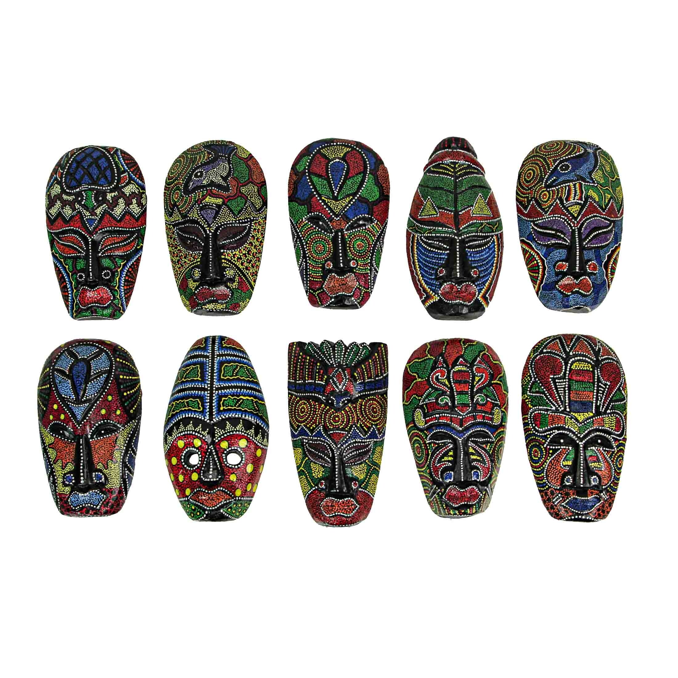 Zeckos Hand Carved Dot Painted Tribal Masks 6 Inch (Set of 10)