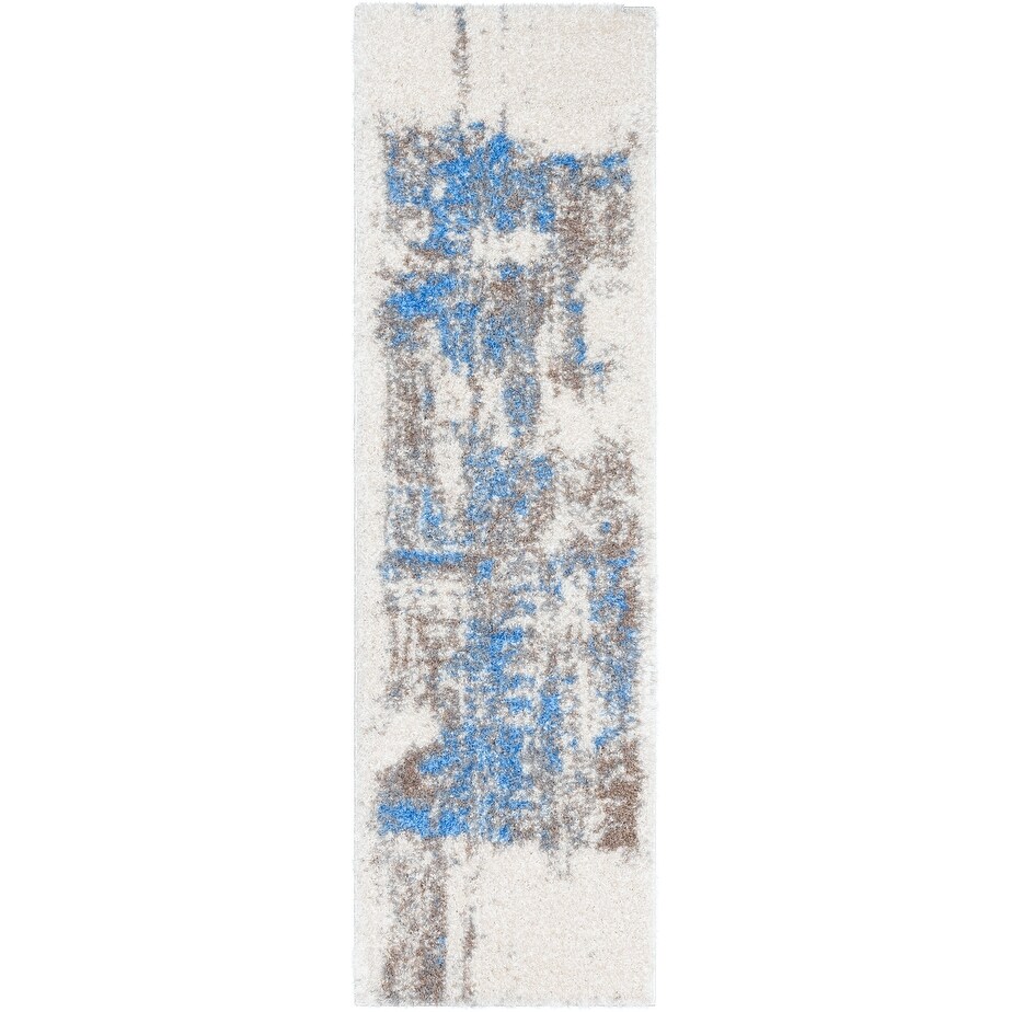 LR Home Carved Transitional Abstract Polyester Area Rug, Gray and Blue