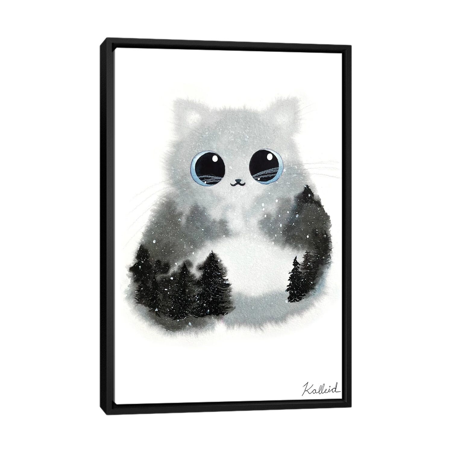 iCanvas "Snow Forest Cat" by Kalleidoscape Design Framed Canvas Print