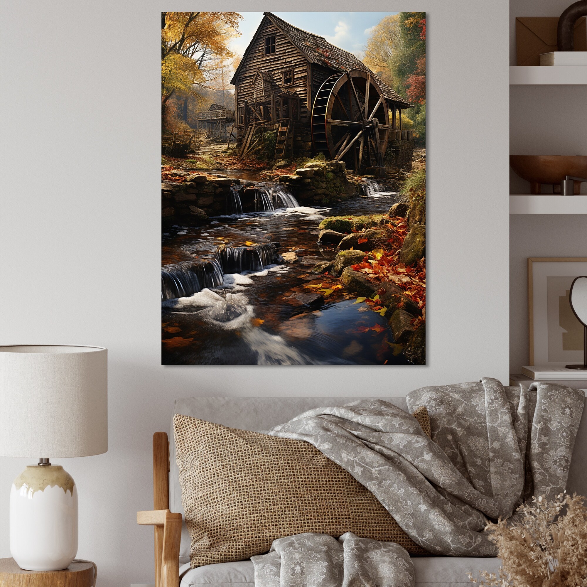 Designart "Green Brown Mills Rustic Charm Green Photo II" Mills Wall Art Living Room