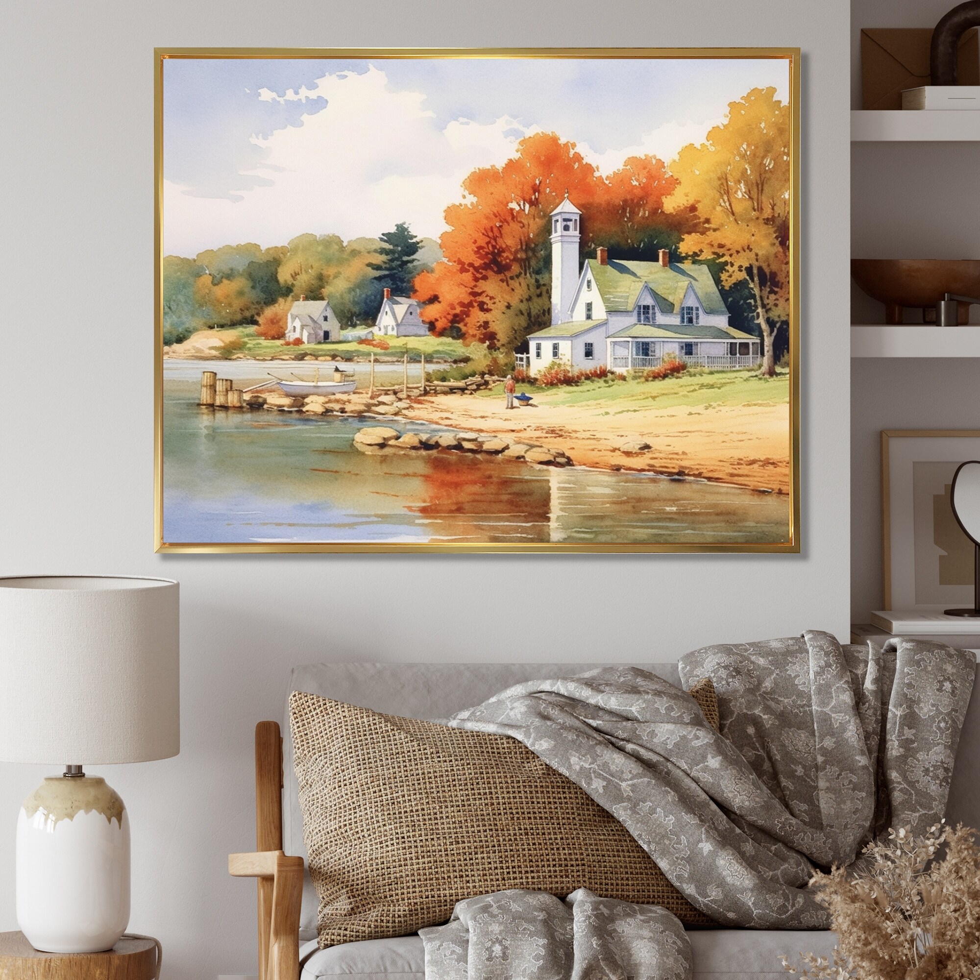 Designart "Connecticut'S Lake Village Charm II" Connecticut Framed Canvas Prints