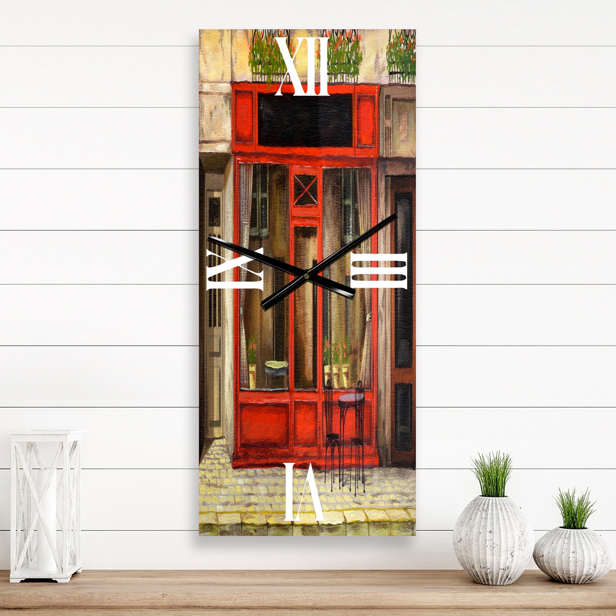 Designart 'Red Facade of Charming Shop in Paris I' French Country Metal Wall Clock