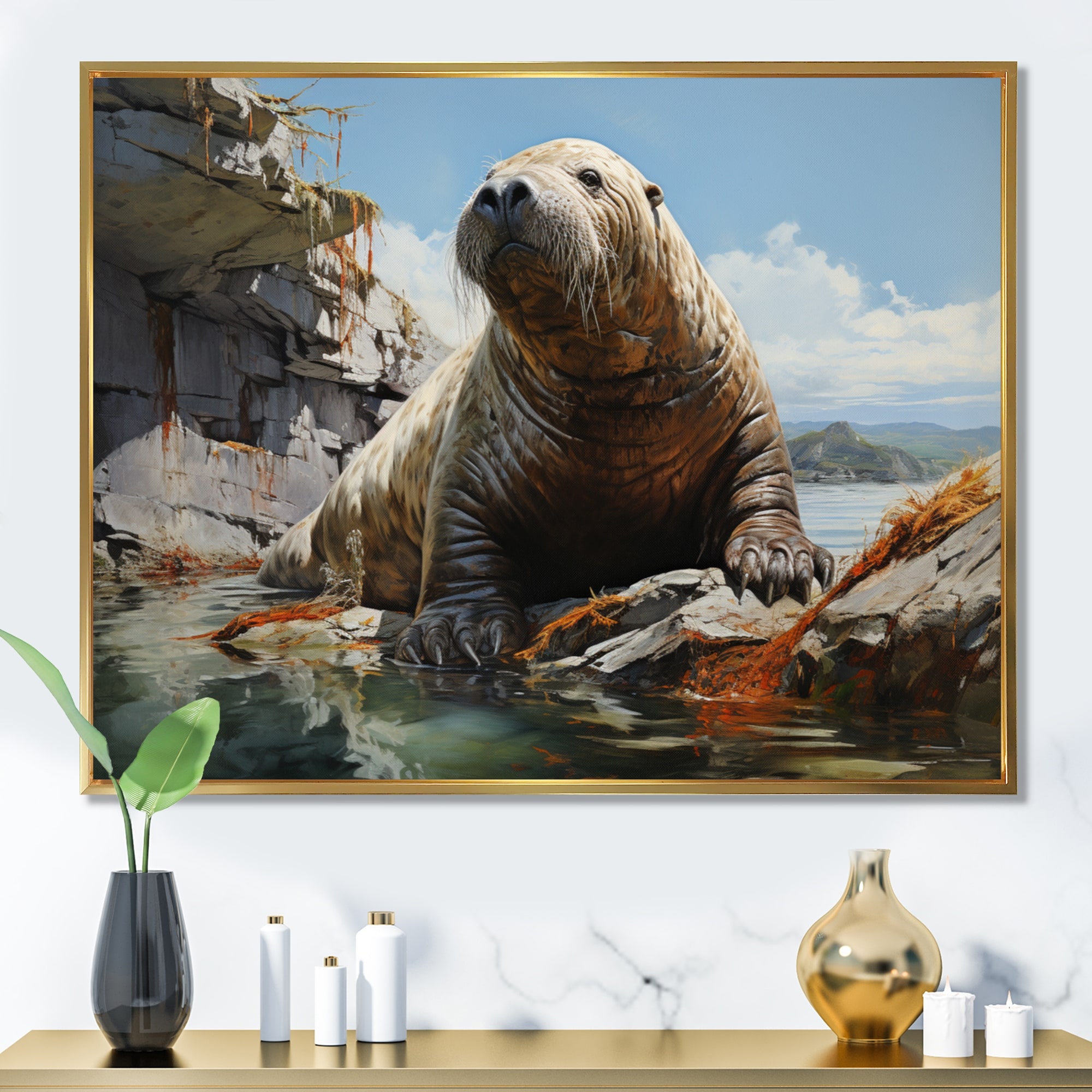 Designart "Walrus Rustic Charm" Walrus Framed Wall Art Prints