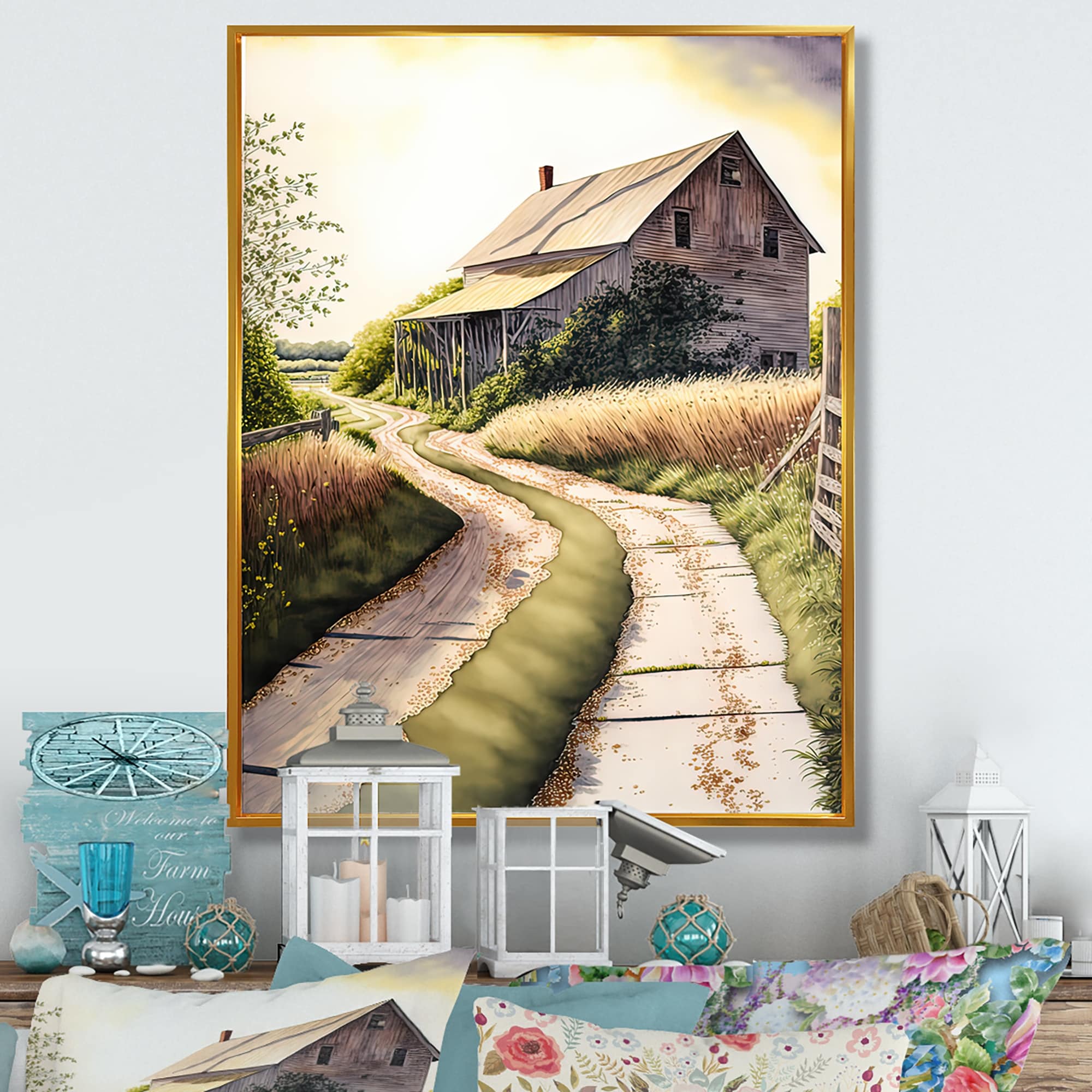 Designart "Charming Barn And Path III" Farmhouse / Country Framed Canvas Art Print