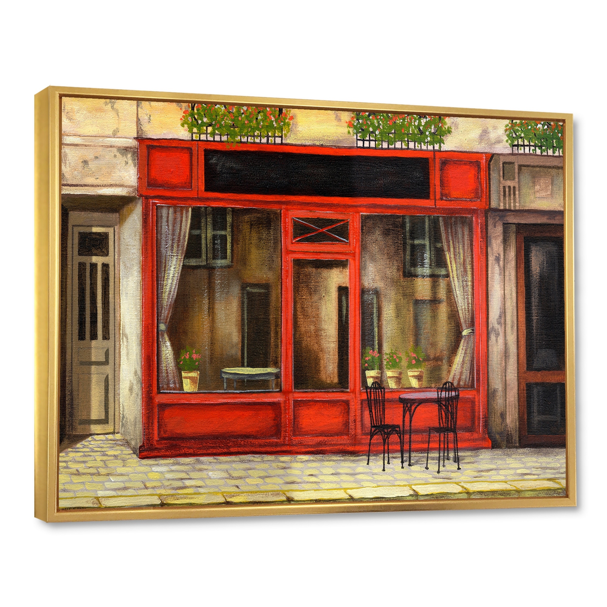 Designart "Red Facade of Charming Shop in Paris I" French Country Framed Canvas Wall Art Print