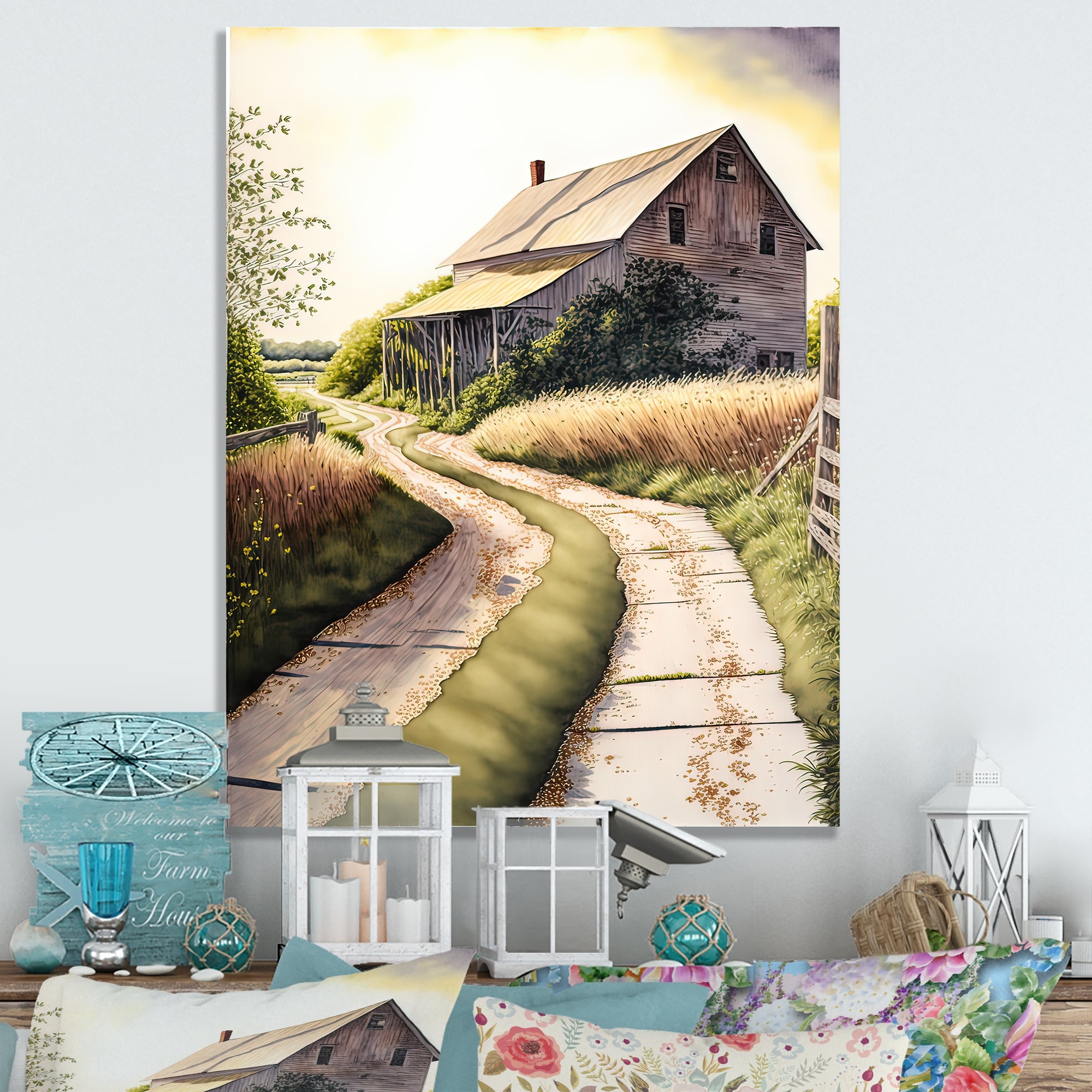 Designart 'Charming Barn And Path II' Farmhouse / Country Canvas Wall Art