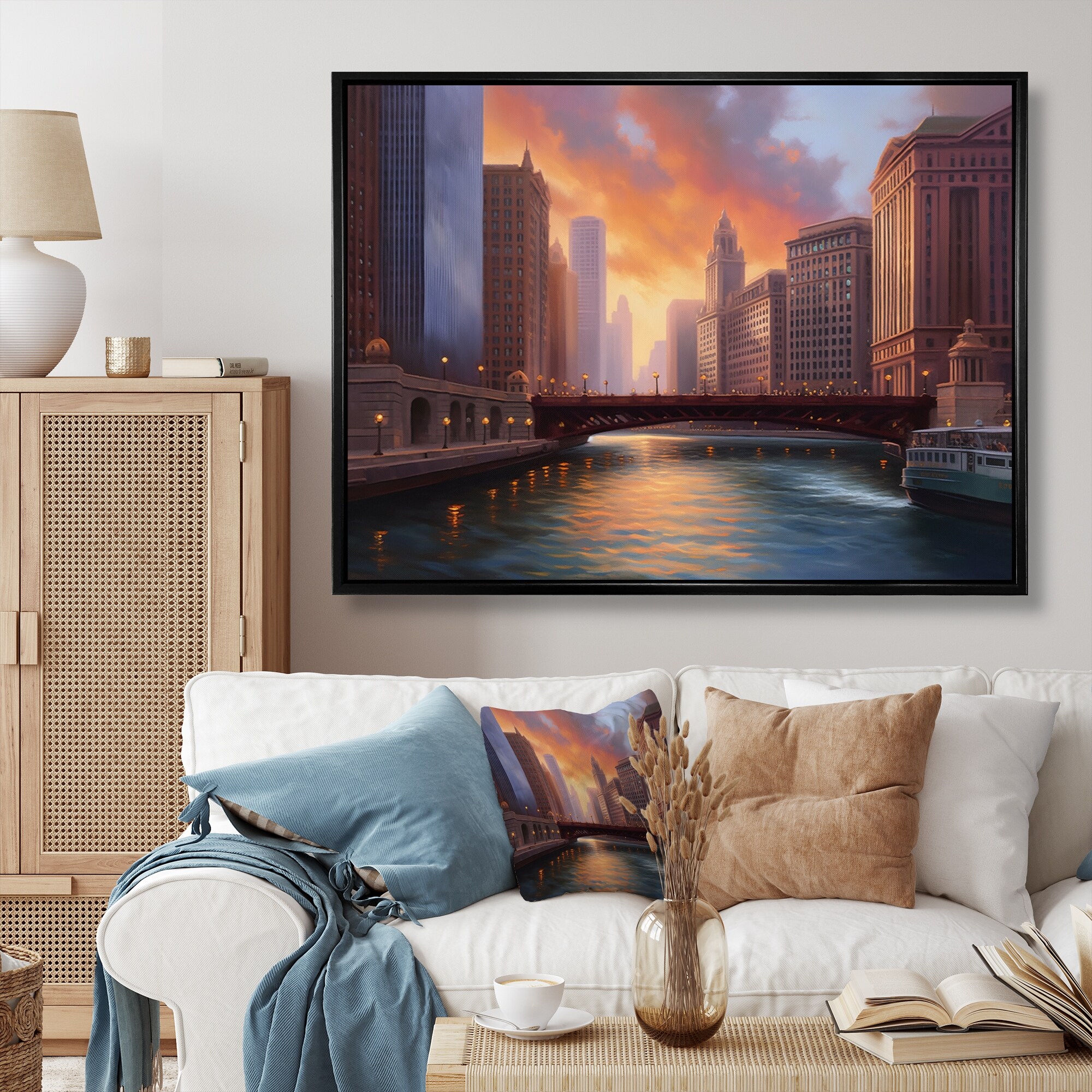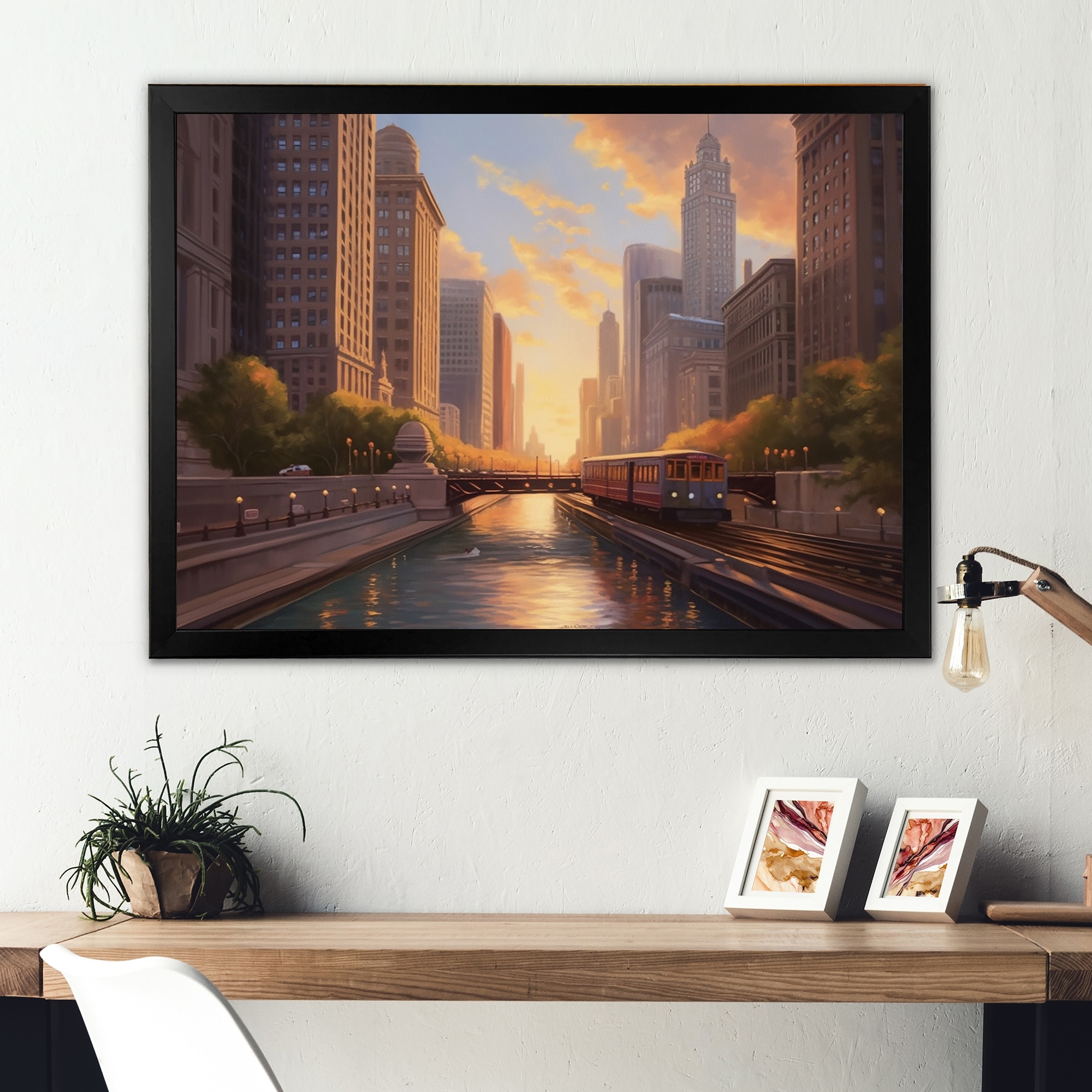 Designart "Chicago City Scene I" Landscape Modern Framed Canvas Print