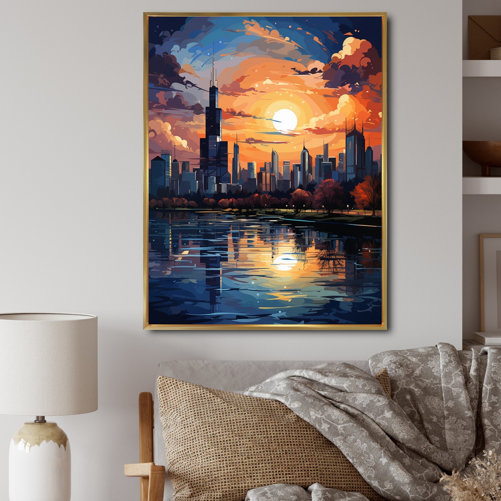 iCanvas "Chicago Desert Style Skyline" by WallDecorAddict Framed Canvas Print