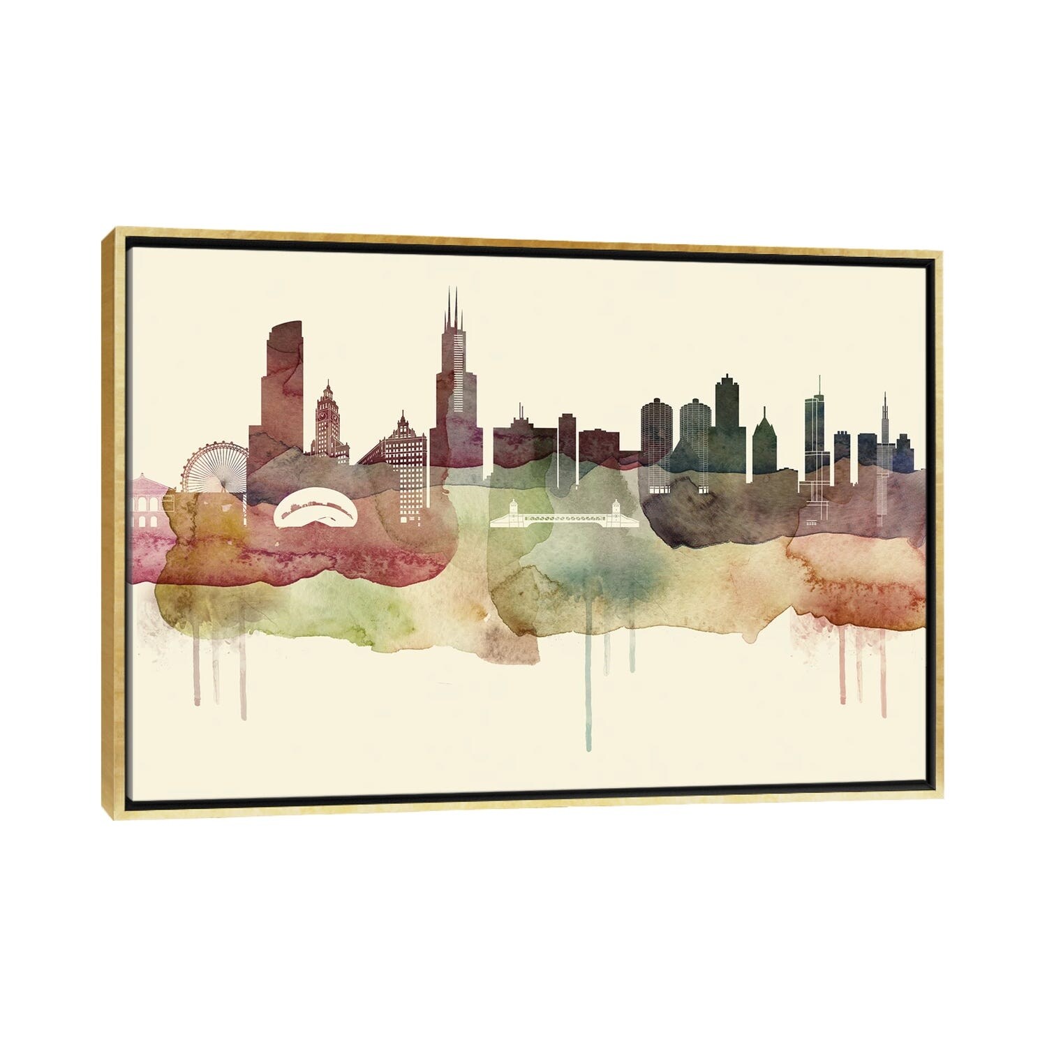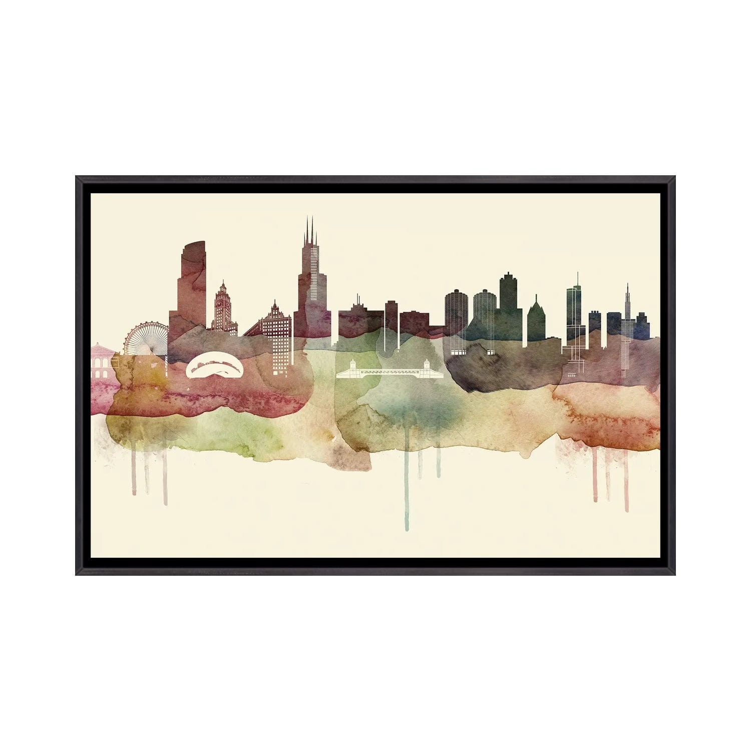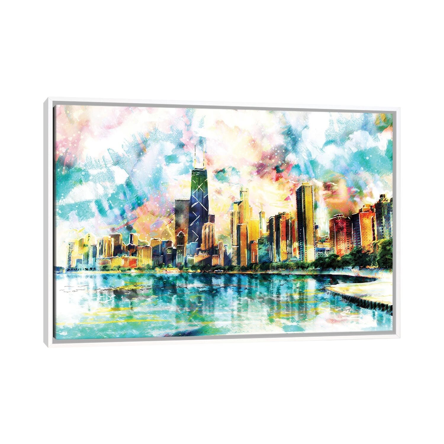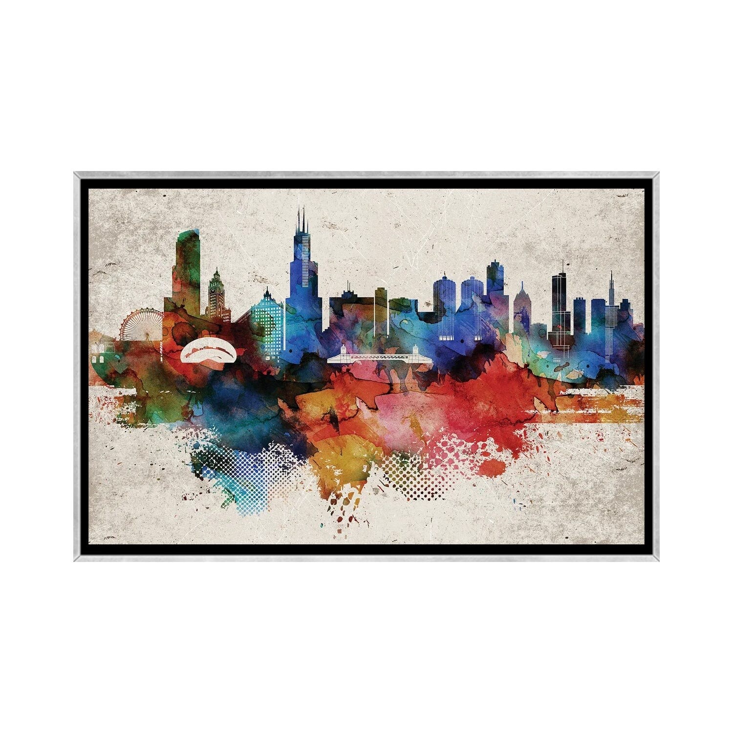 iCanvas "Chicago Colorful Watercolor Skyline" by WallDecorAddict Framed