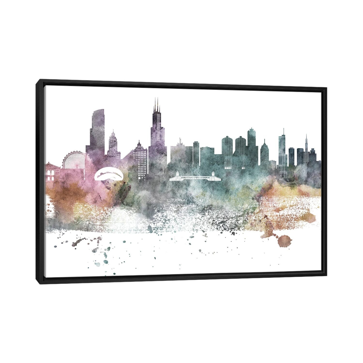 iCanvas "Chicago Pastel Skylines" by WallDecorAddict Framed Canvas Print