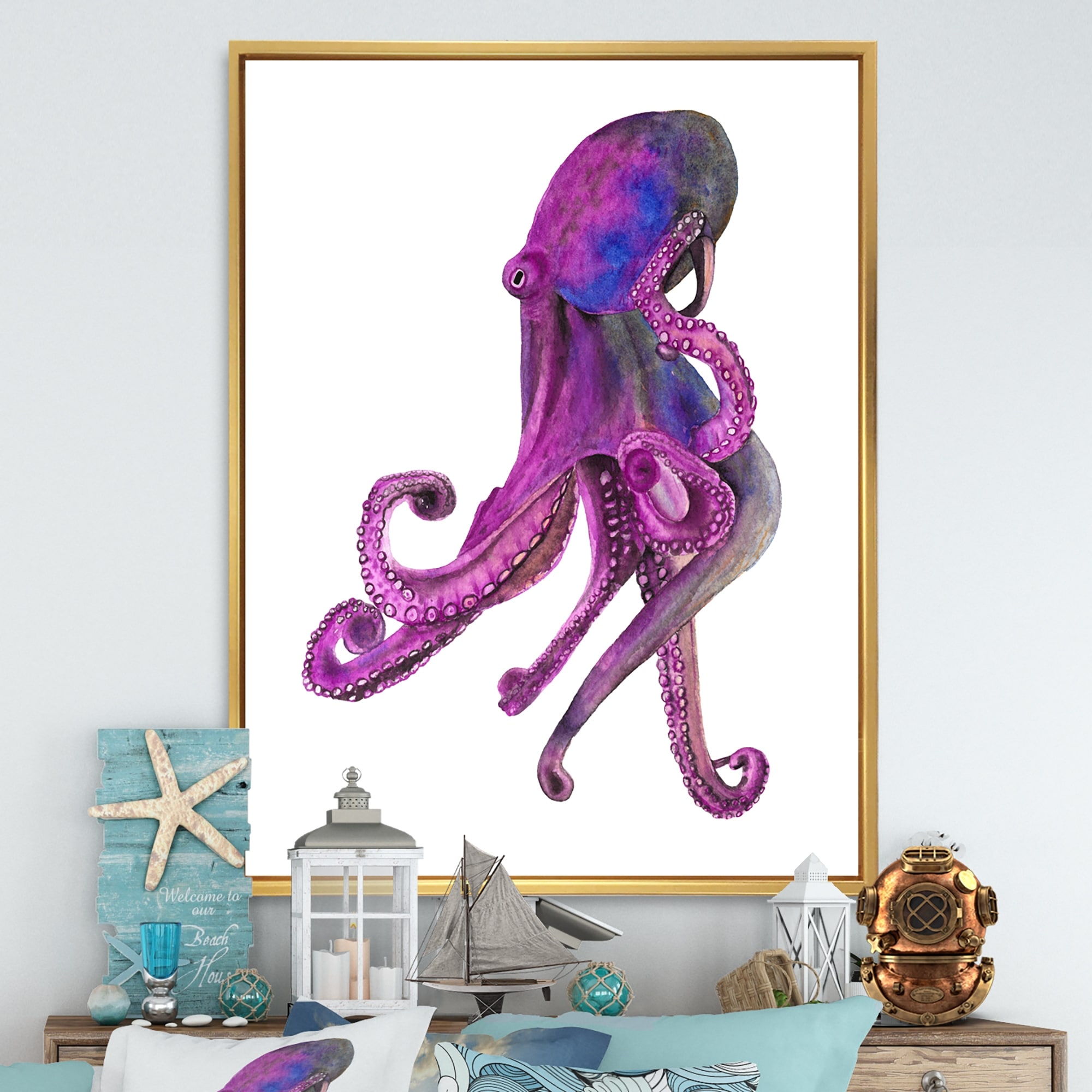 Designart "Cute Purple Octopus Sea" Nautical & Coastal Framed Children's Canvas Art Print