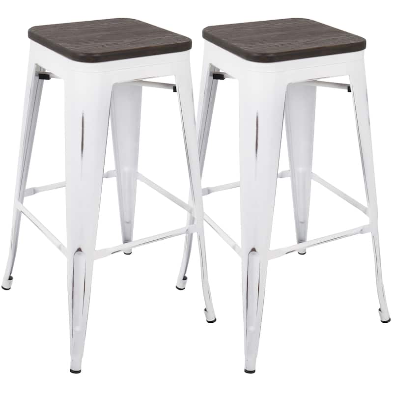 Carbon Loft Samira 30-inch Industrial Barstool with Vintage White Frame and Espresso Wood