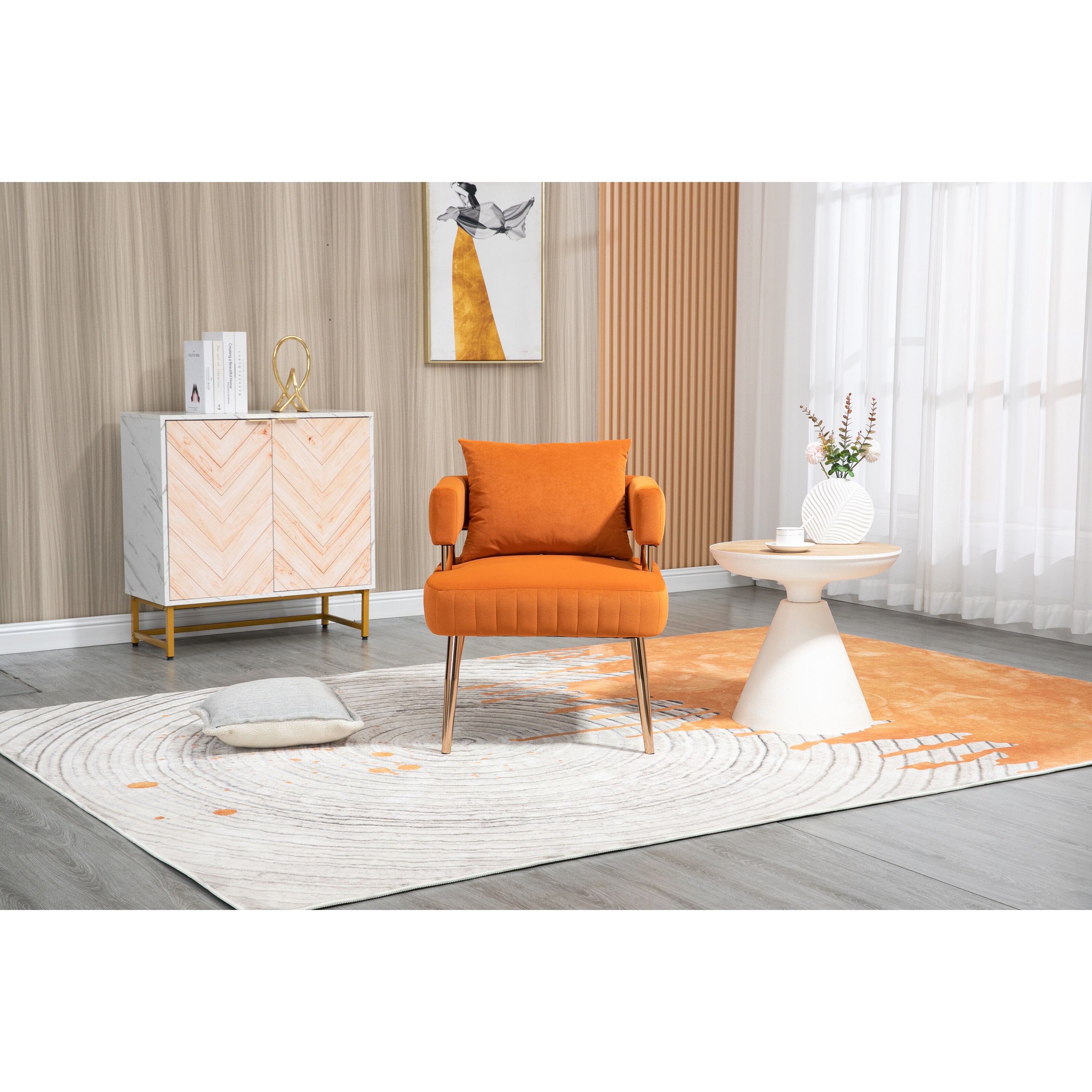 Modern Velvet Dining Chairs Set of 2 Metal legs Business Chair w/ Comfy Upholstered Side Chair Reception Chairs, Orange