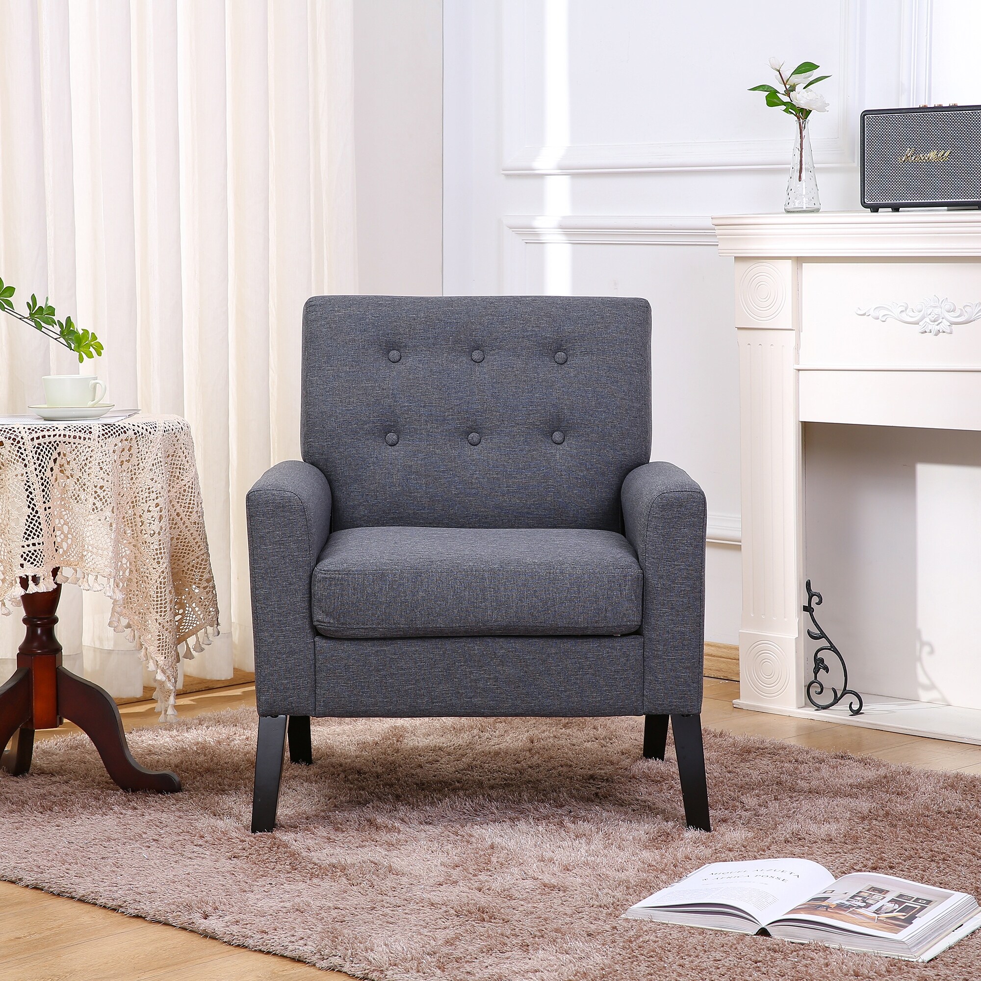 Button Tufted Upholstered Comfy Fabric Accent Chair