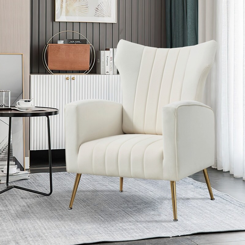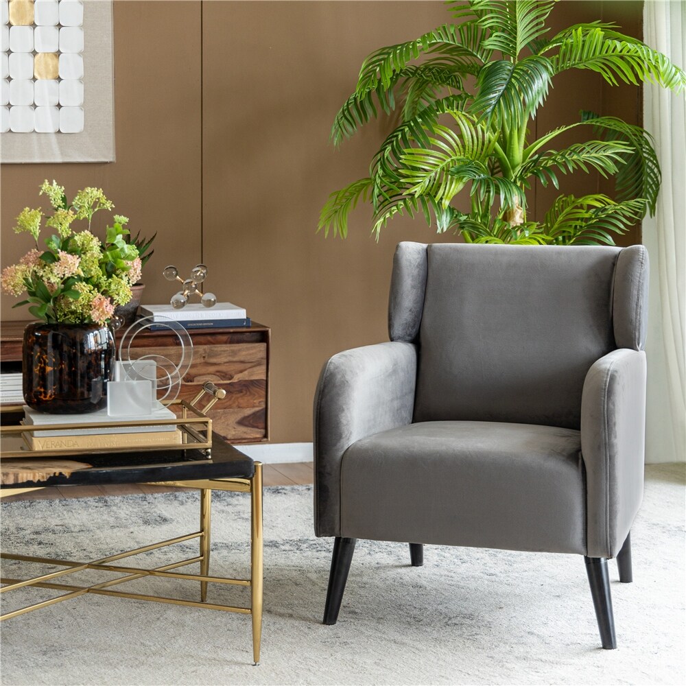 Velvet Accent Chair with Arms Wingback Reading Chair with Gold Metal Legs Comfy Upholstered Single Leisure Sofa