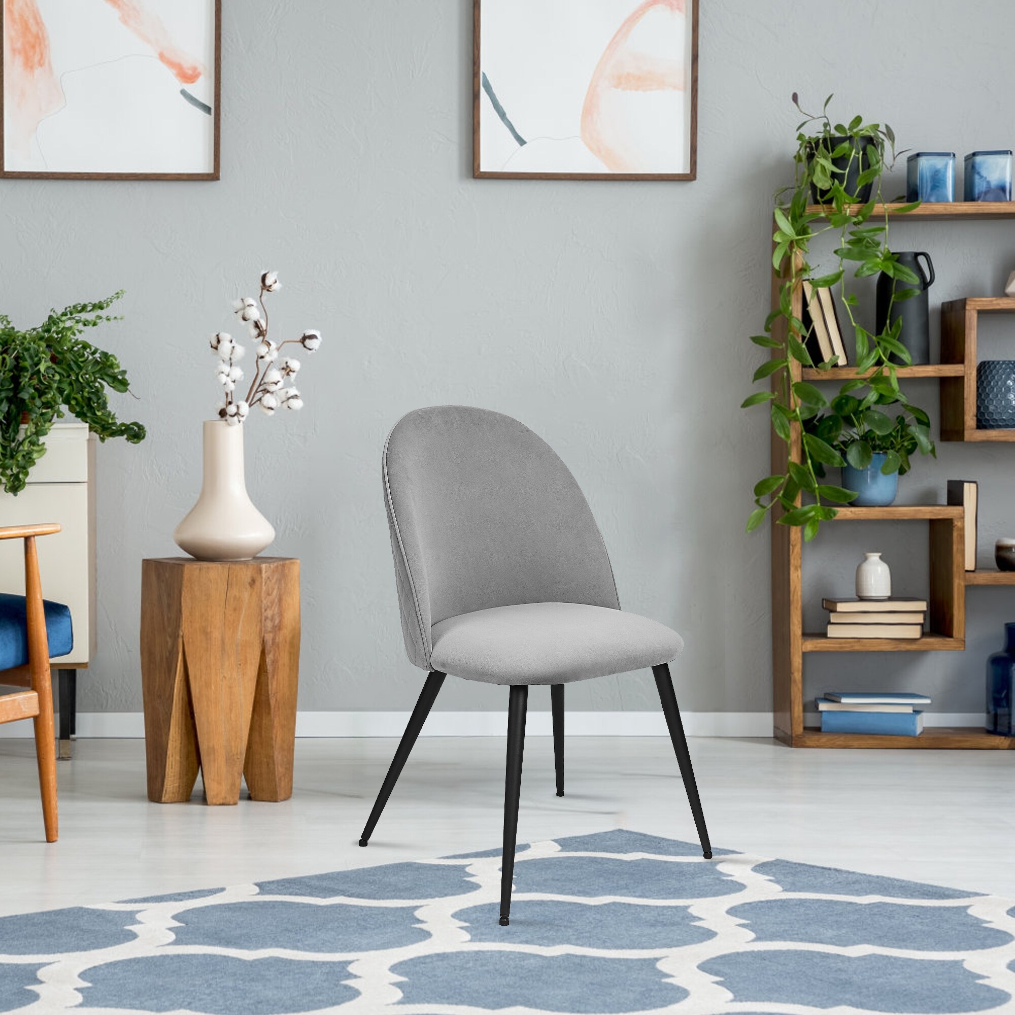 Soft Velvet Dining Chairs Set of 2 Comfy Upholstered Side Chair Accent Chairs, LIGHT GREY