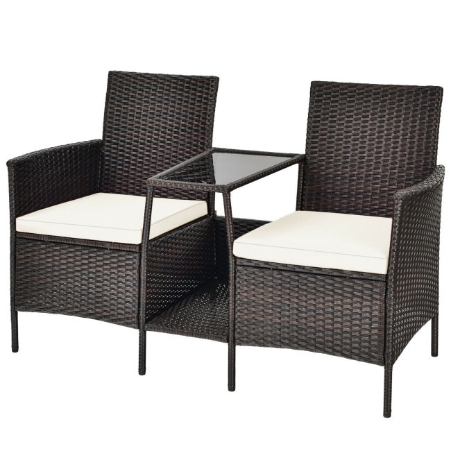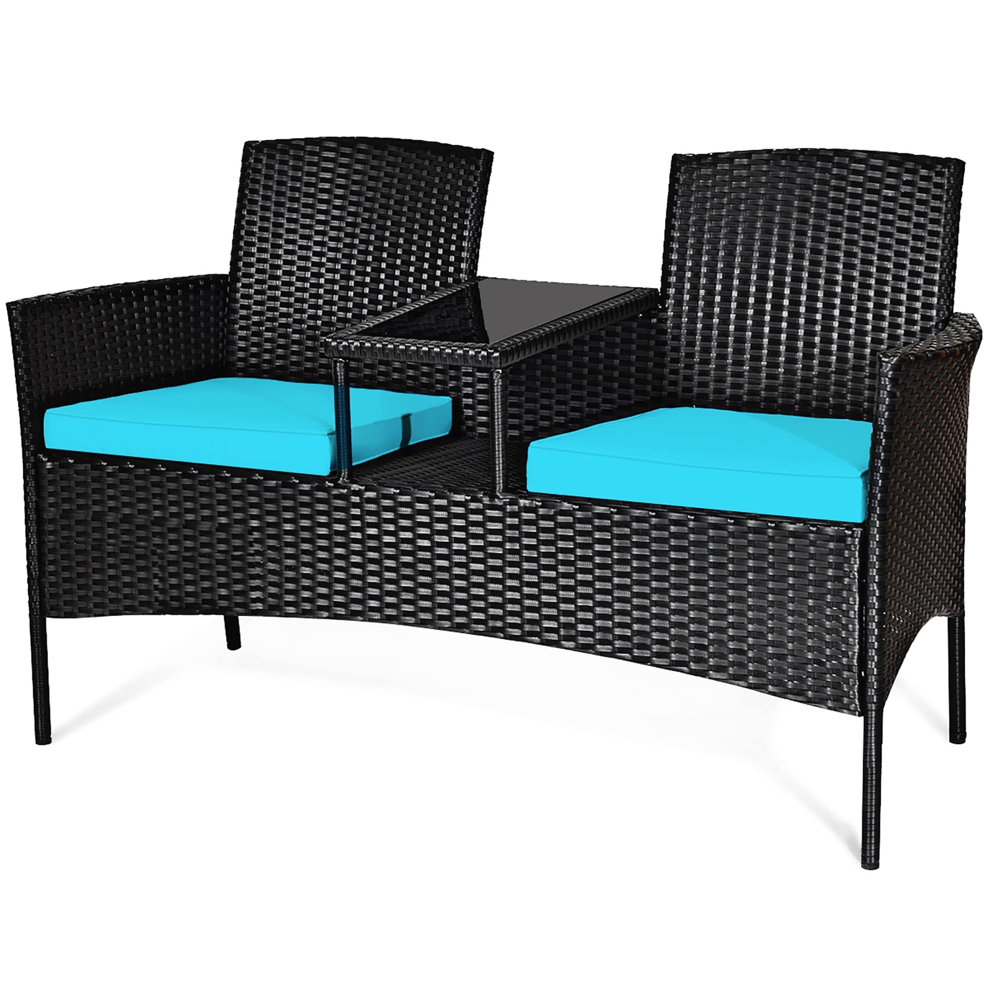 Costway Patented Patio Rattan Conversation Set Loveseat Sofa Cushioned