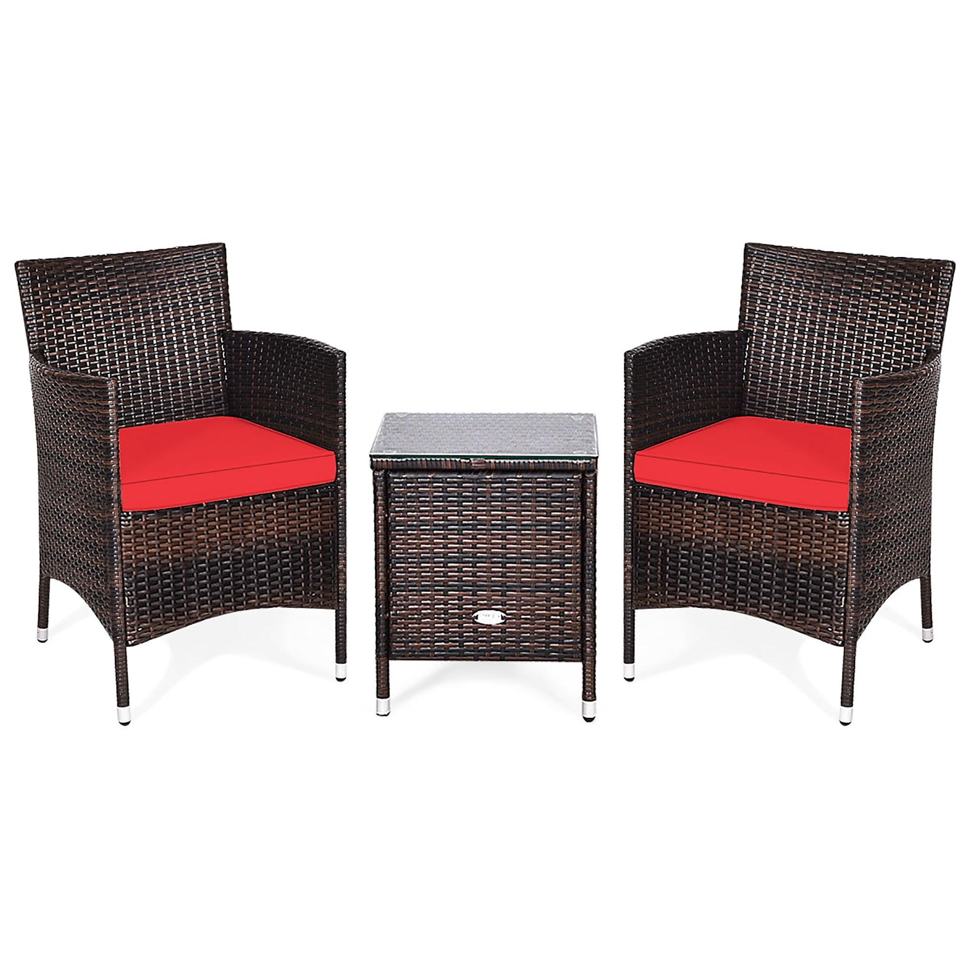3 PCS Patio Bistro Set Rattan Conversation Set with Round Coffee Table