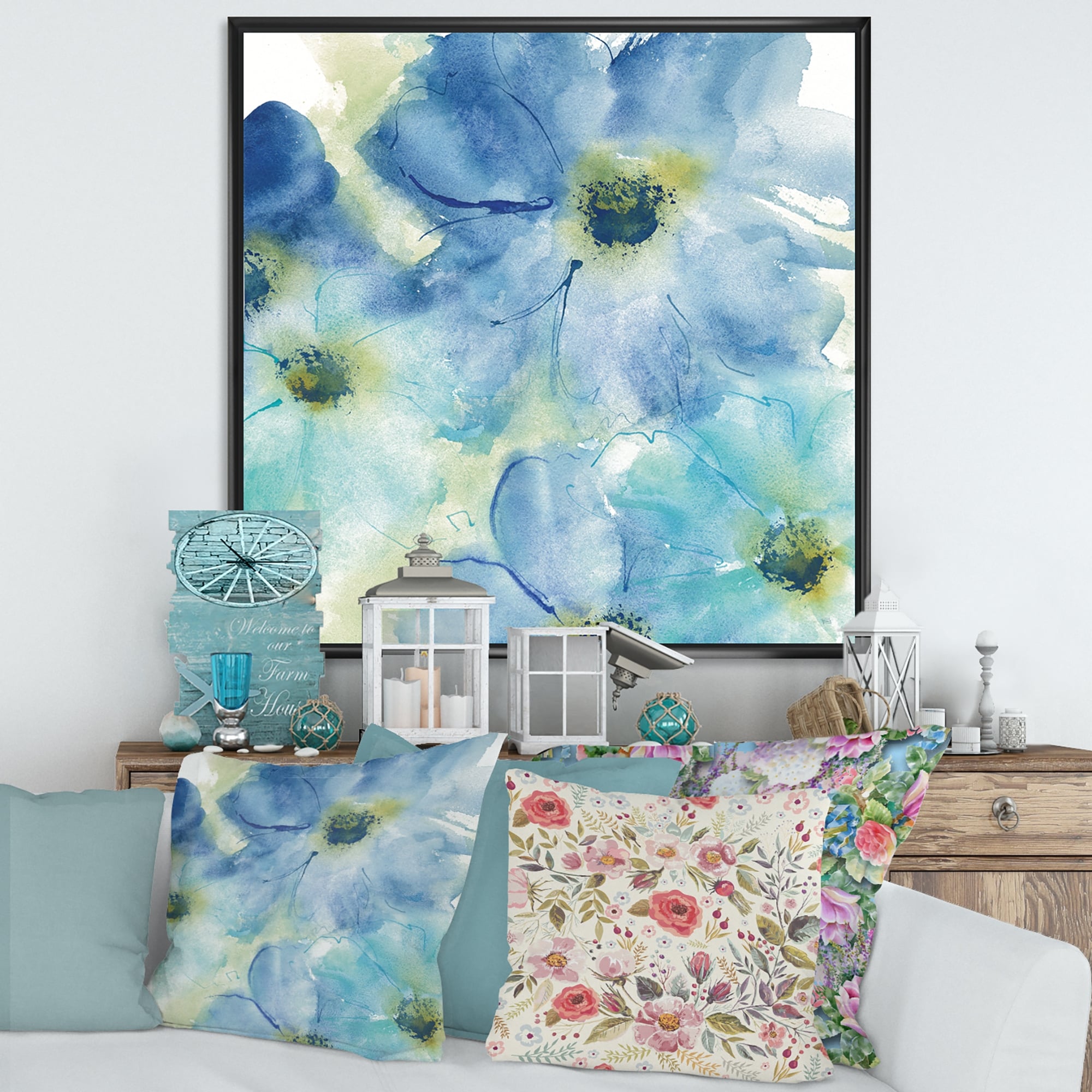 Designart "Blue Cosmos Indigo II" Farmhouse Canvas Art