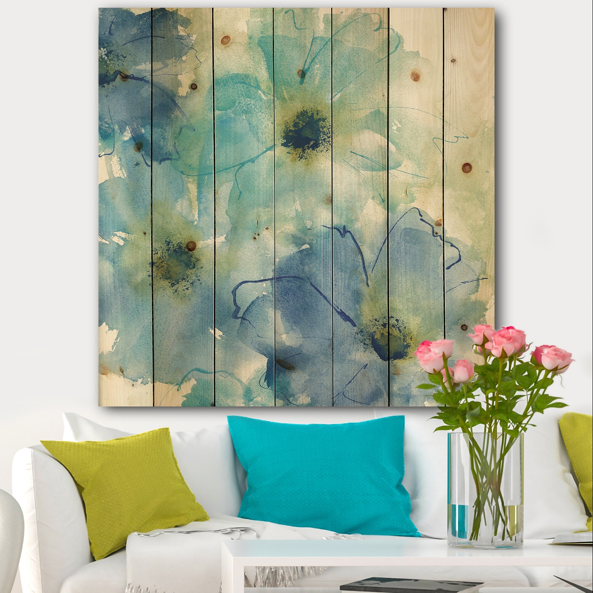 Designart 'Seashell Cosmos II' Cabin & Lodge Print on Natural Pine Wood - Blue