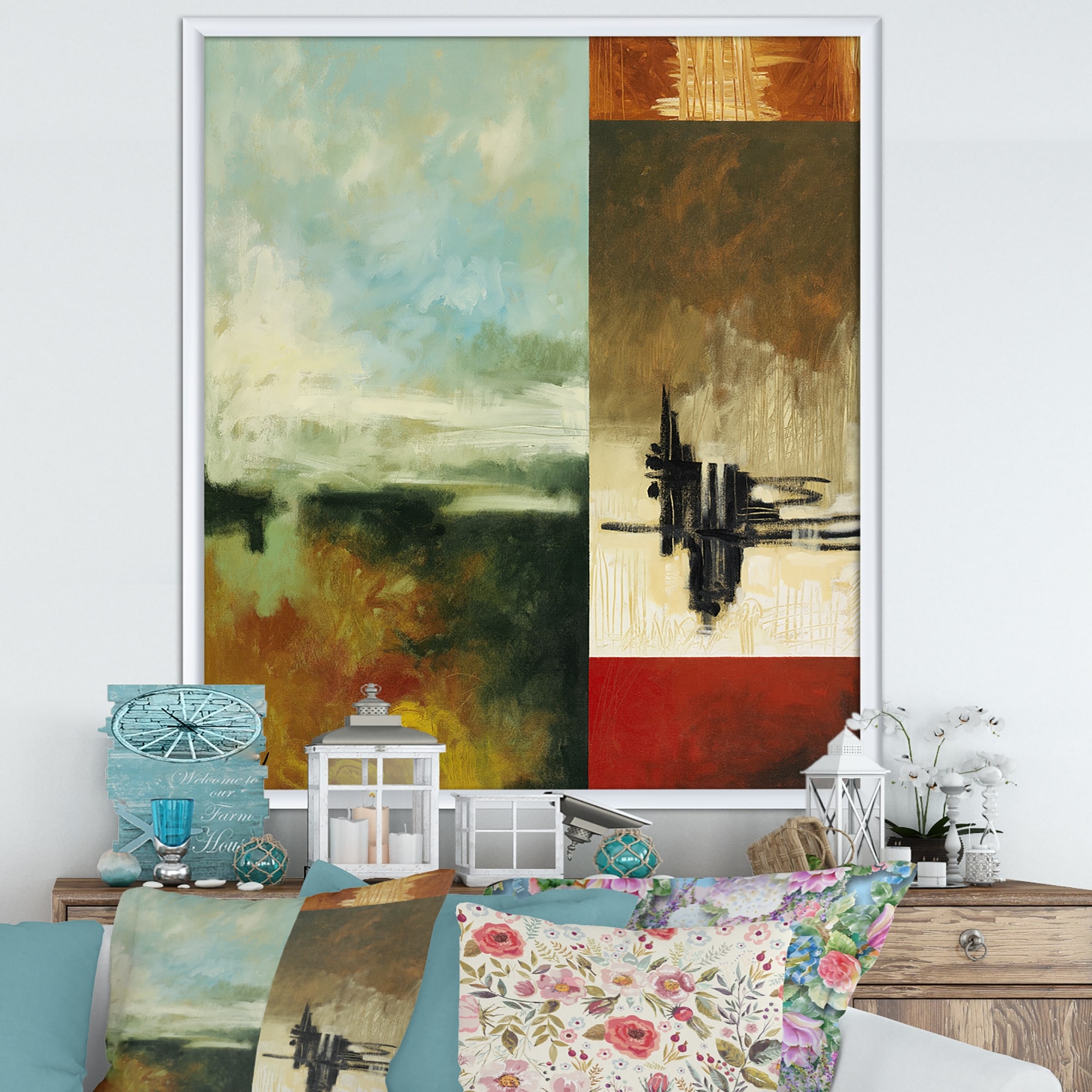 Designart "4 Squares in Earth Tones" Cottage Framed Art Print
