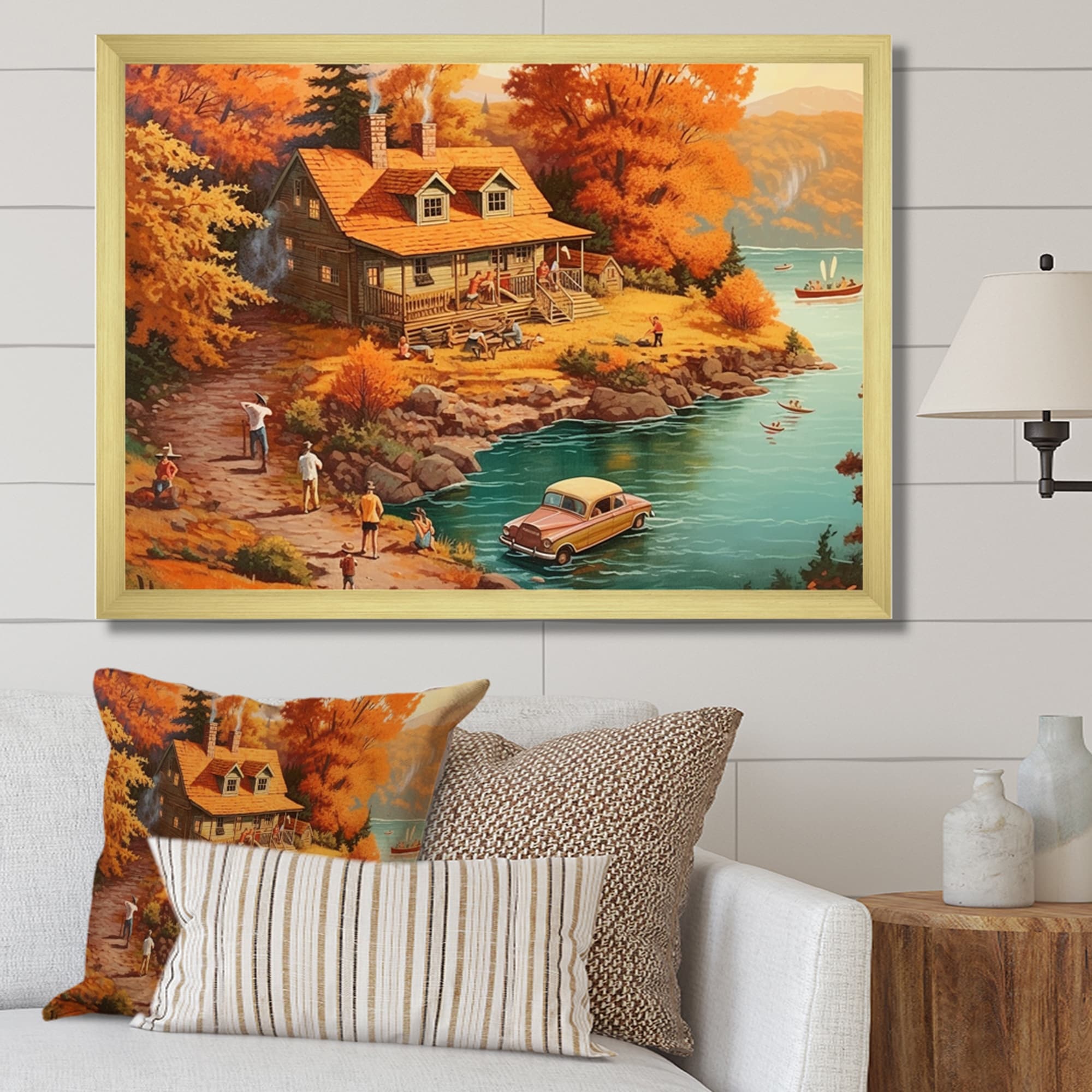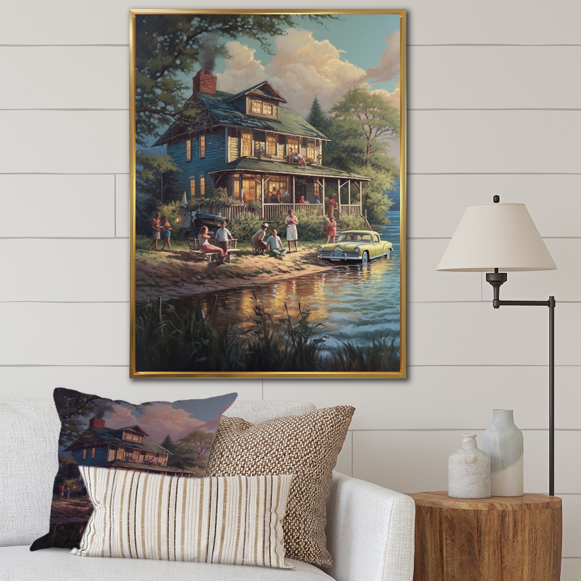 Designart "Summer Vaccation At the Cottage Ii" Cottage Landscape Framed Canvas Wall Art