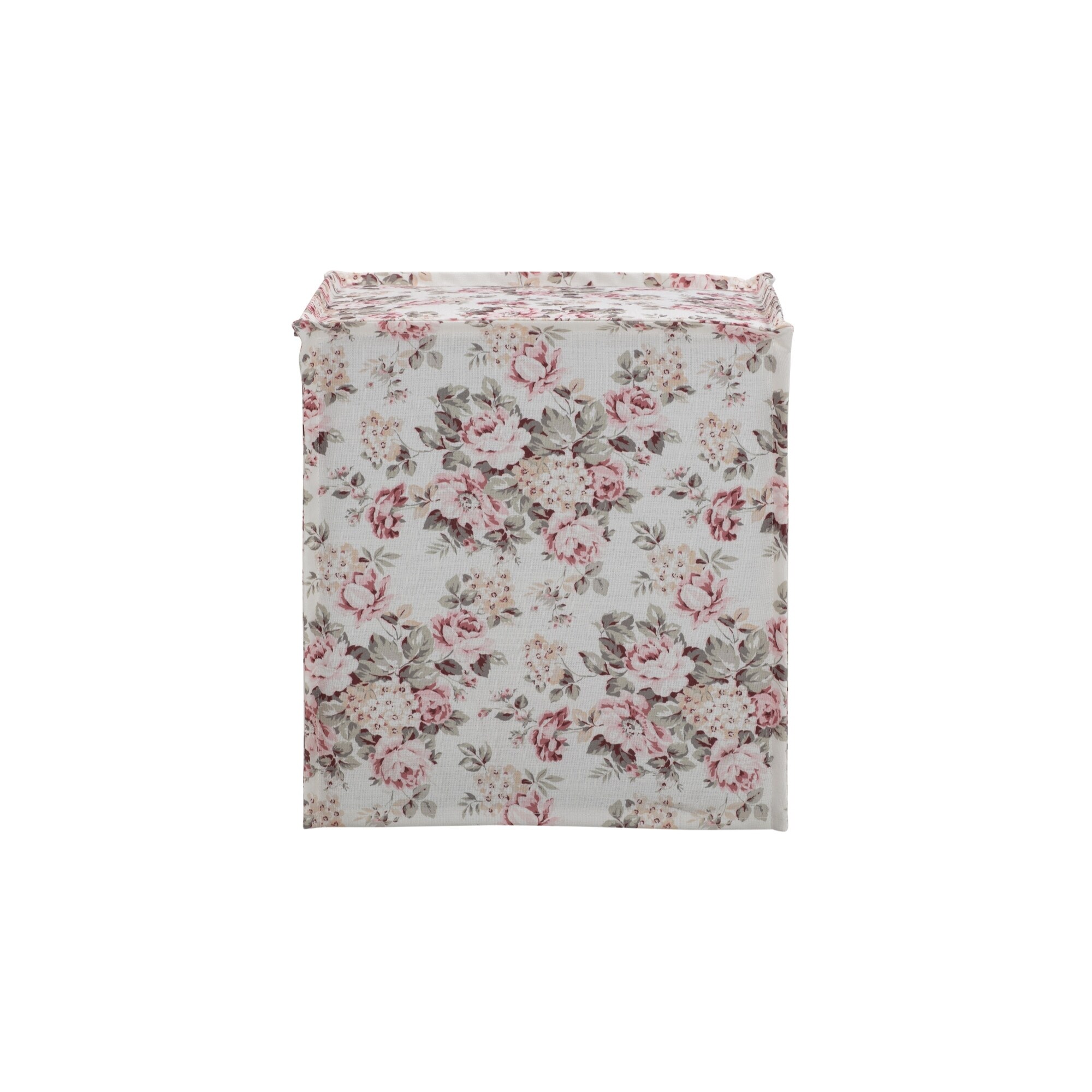 HomeRoots 18" Cottage Ivory and Pink Linen Floral Ottoman