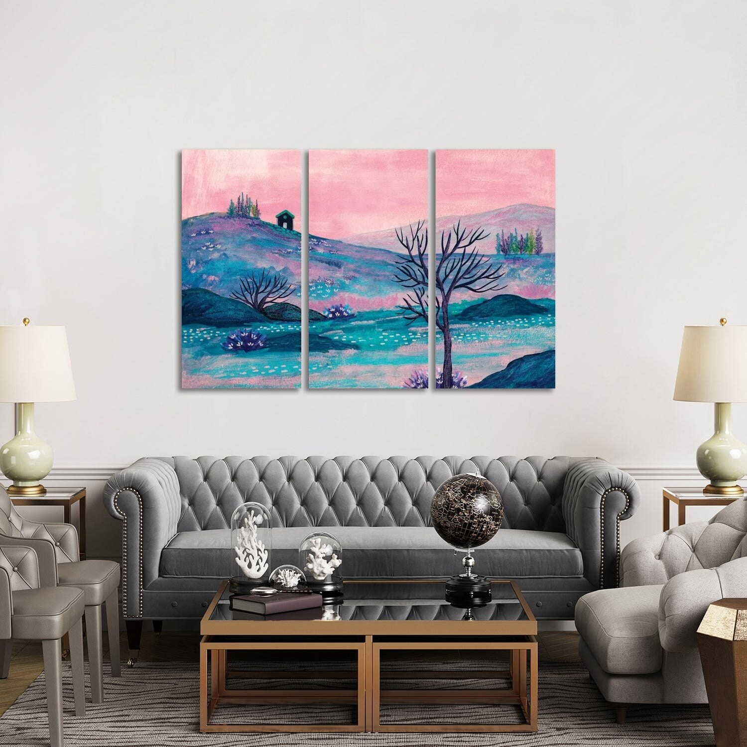 iCanvas "Cottage And Pink Sky" by Viviana Gonzalez 3-Piece Canvas Wall Art Set