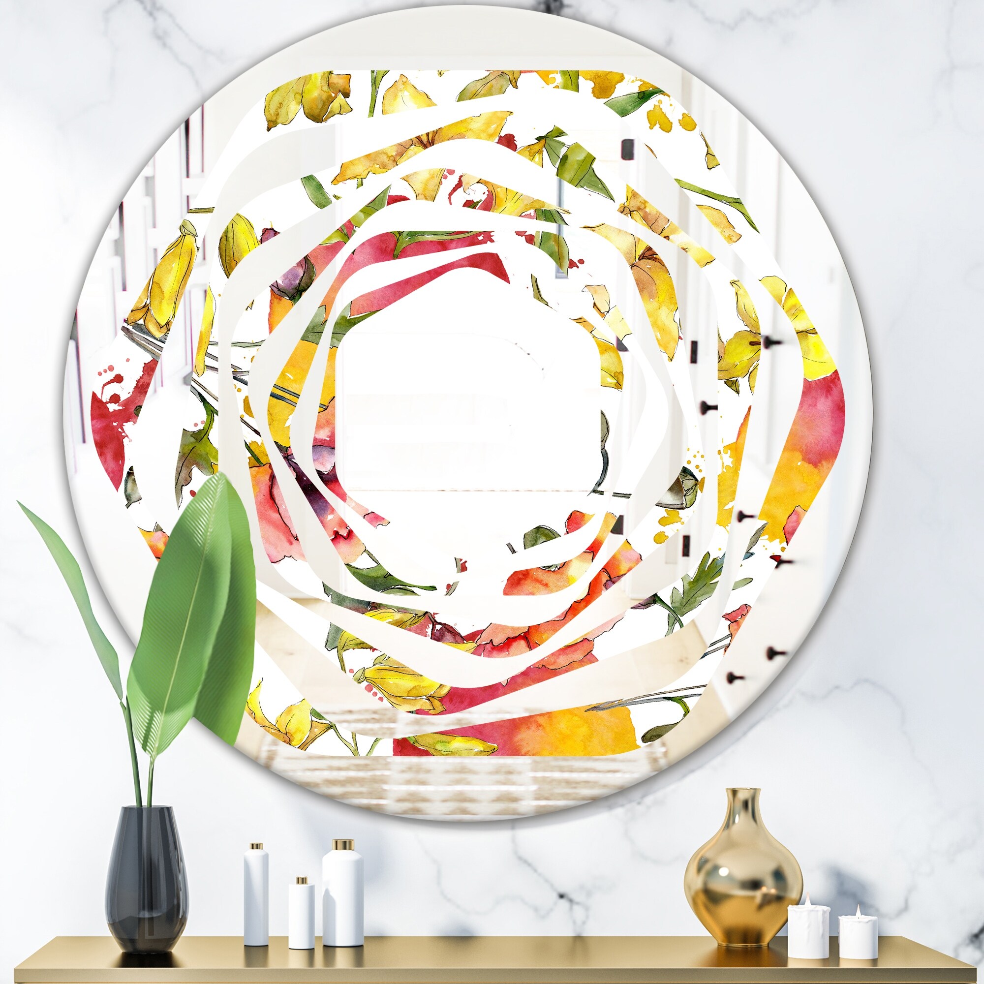 Designart 'Retro Handdrawn Poppies IV' Printed Cottage Round or Oval Wall Mirror - Whirl