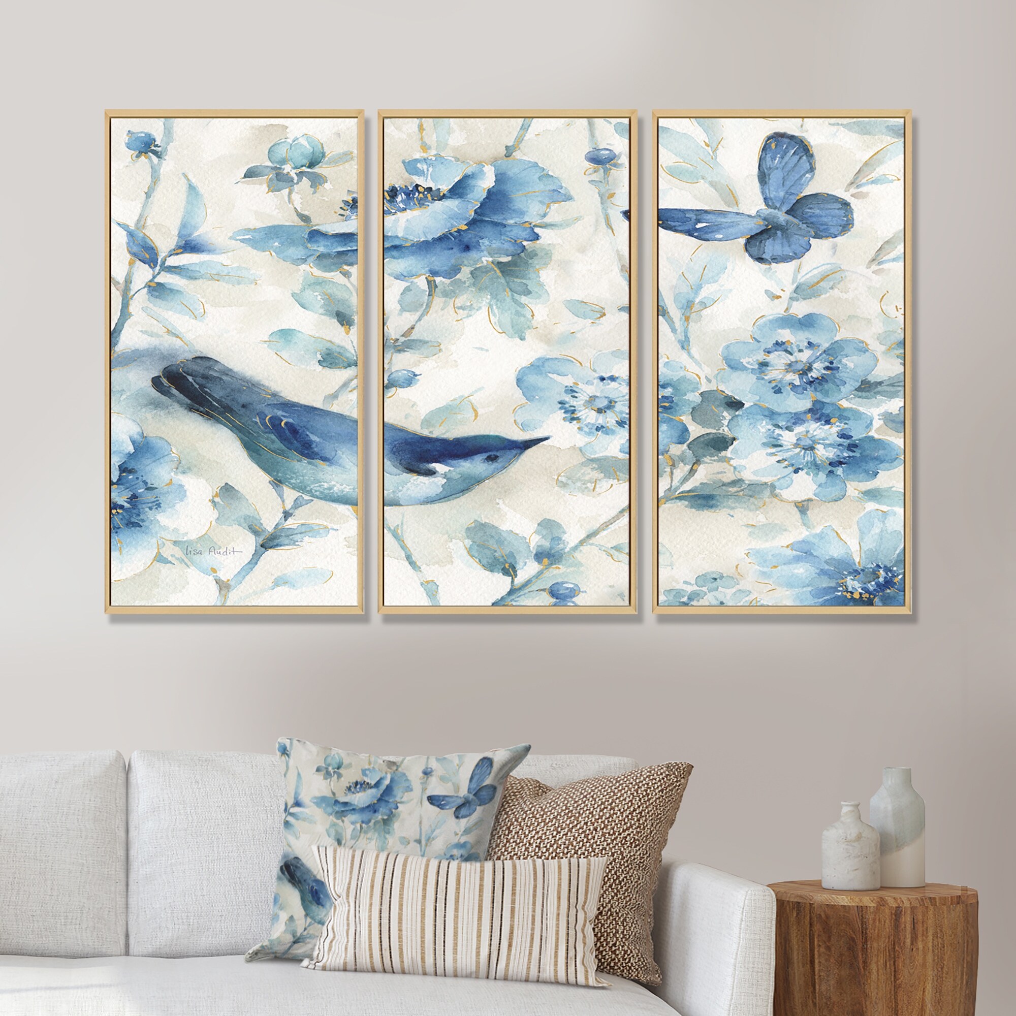 Designart "Indigold Bird Cottage Family II" Traditional Framed Artwork Set of 3 - 4 Colors of Frames