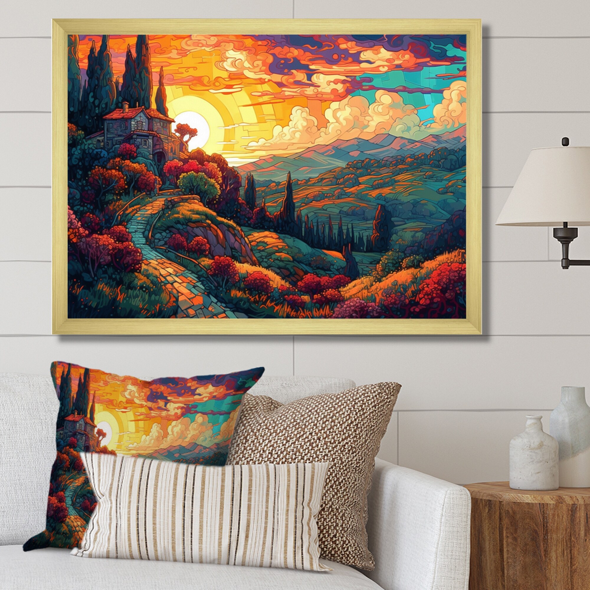 Designart "Rainbow Sky Valley I" Cottage Landscape Framed Wall Decor
