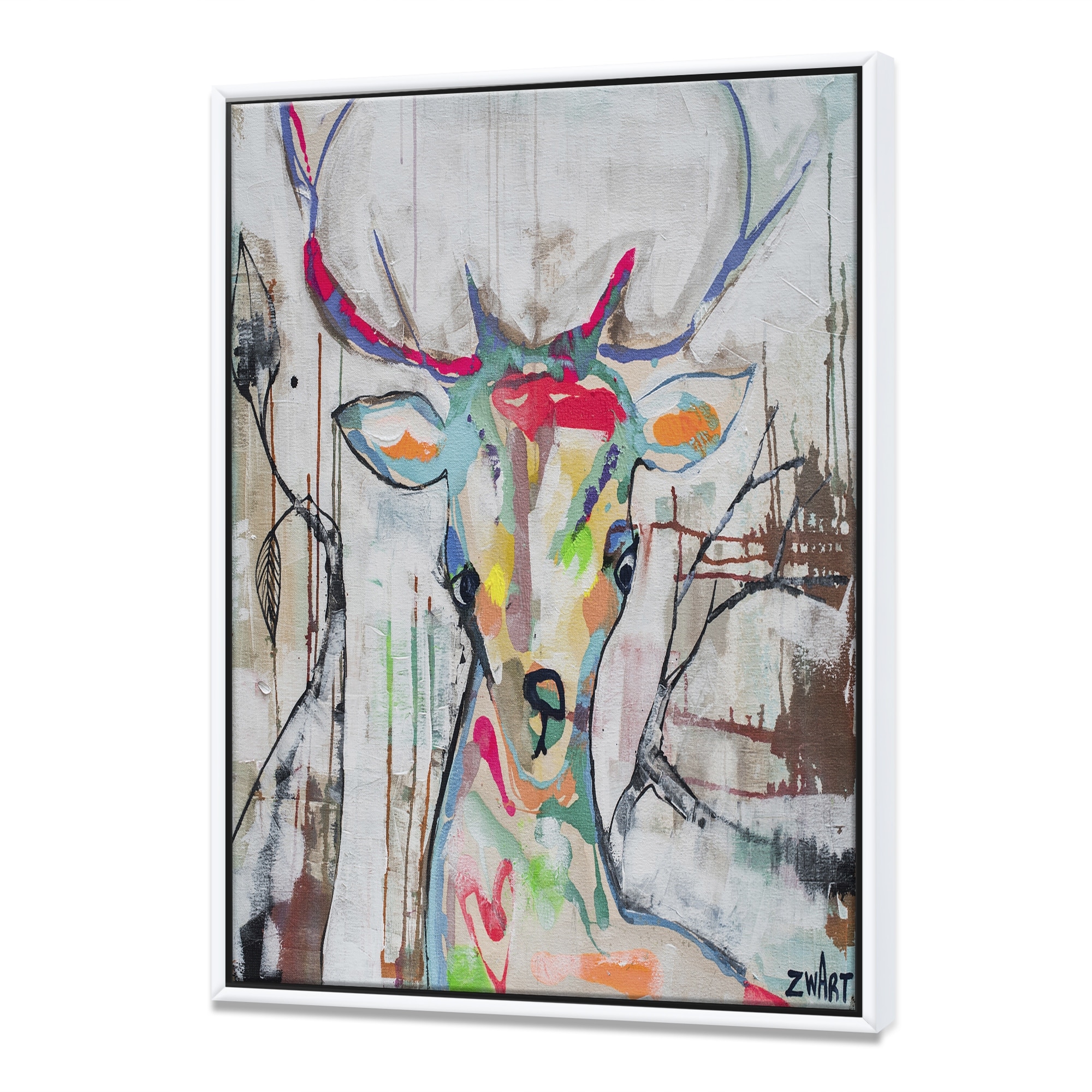 Designart "Colorful Deer II" Cottage Premium Framed Canvas Wall Art
