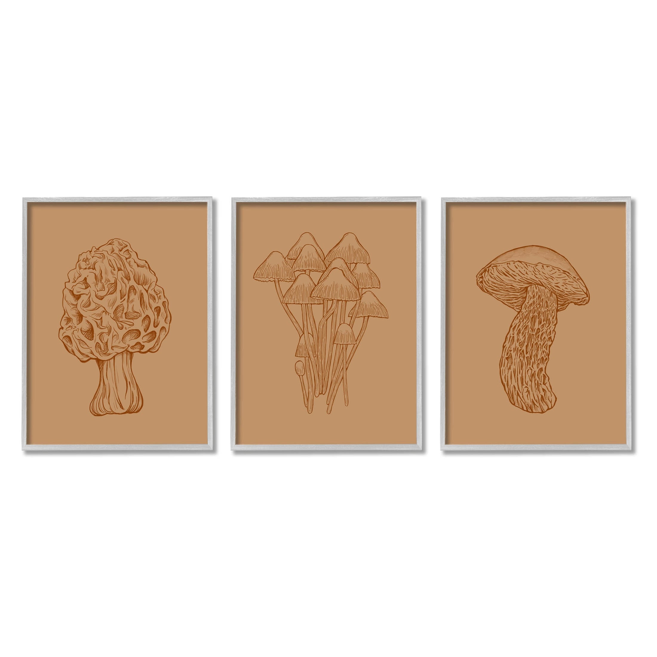 Stupell Natural Cottage Mushroom Botanicals 3 Piece Framed Giclee Art Set, Design by Ziwei Li