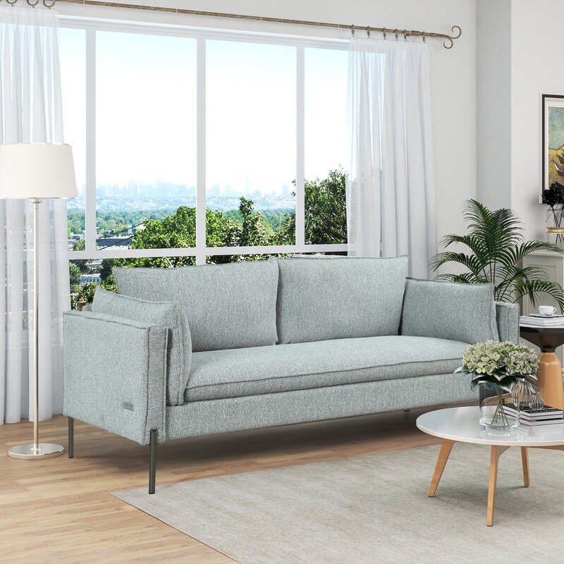 72.8" Linen Upholostered Loveseat Couch with Removable Tray and Adjustable Metal Legs
