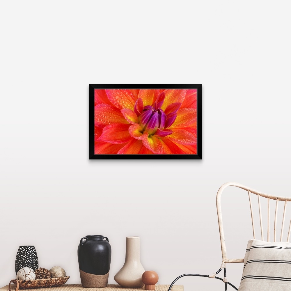 "Center of brightly coloured dahlia" Black Framed Print