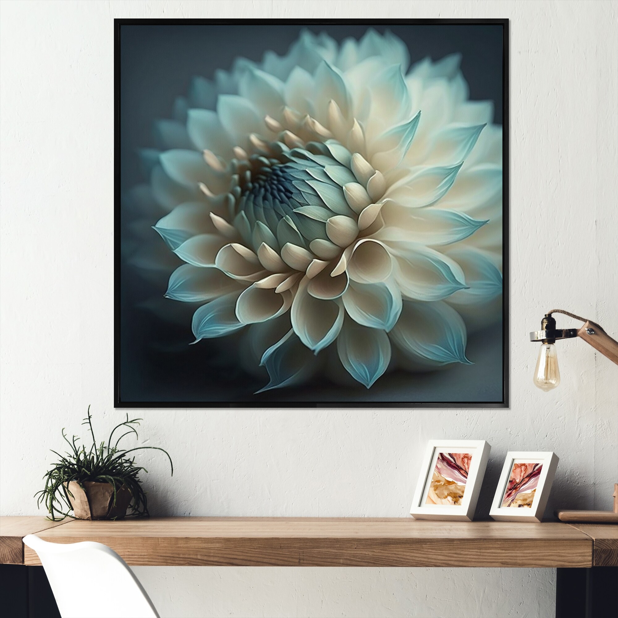 Designart "Blue And White Dahlia Flowers V" Floral Dahlia Framed Canvas Art Print