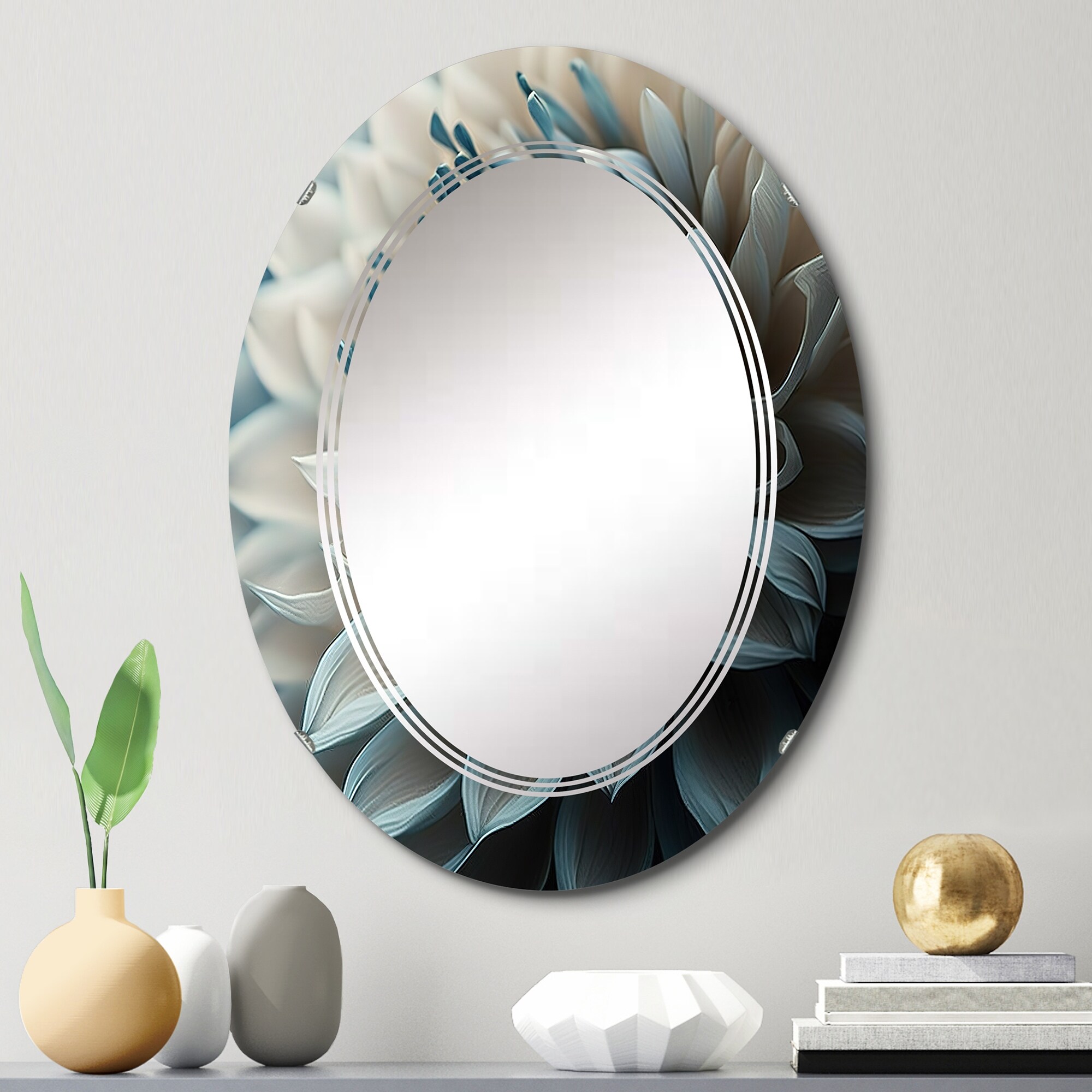 Designart 'Blue And White Dahlia Flowers II' Printed Floral Dahlia Wall Mirror