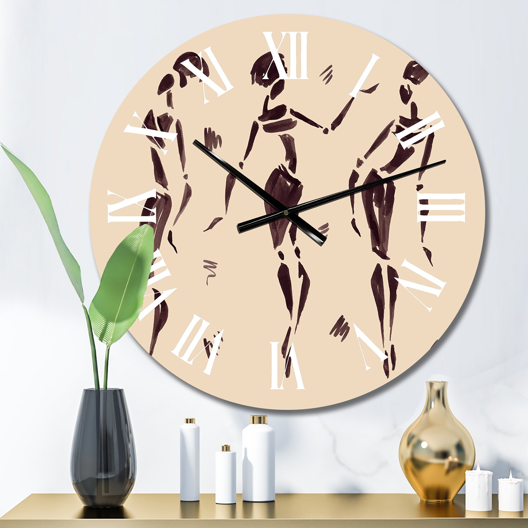 Designart 'Abstract Brown Dancers' Glam wall clock