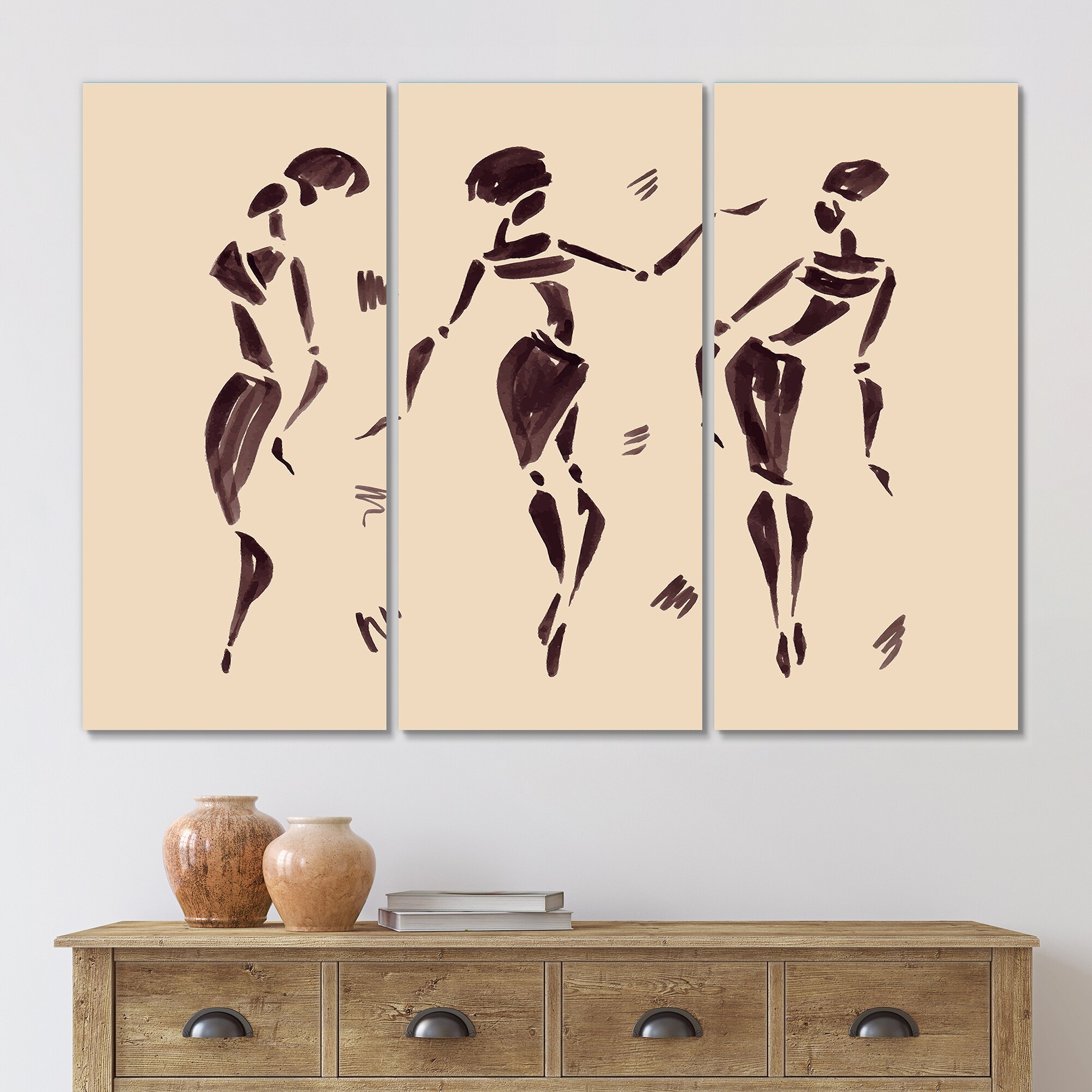Designart "Abstract Brown Dancers" Glam Canvas Wall Art Print