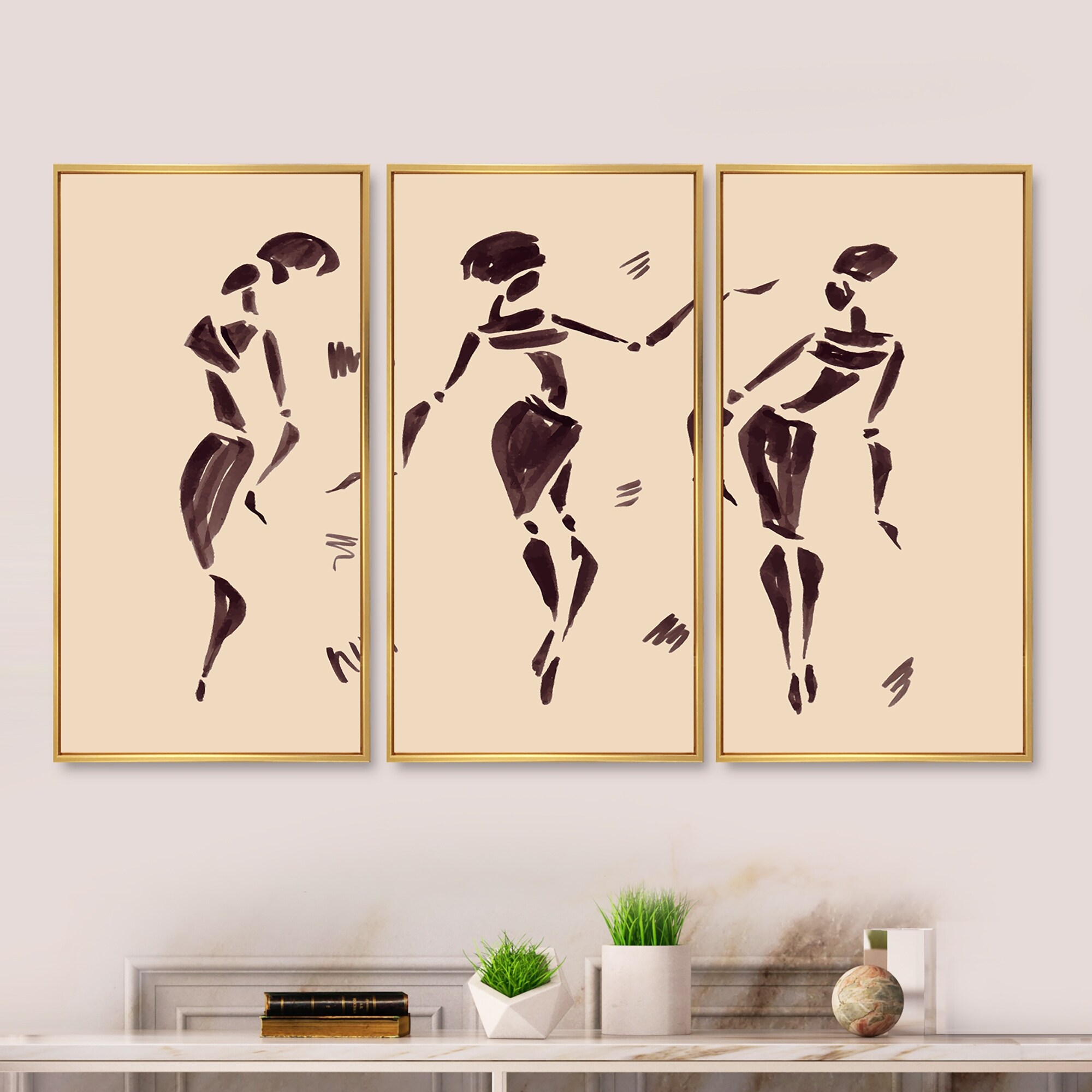 Designart "Abstract Brown Dancers" Glam Framed Wall Art Set of 3 - 4 Colors of Frames
