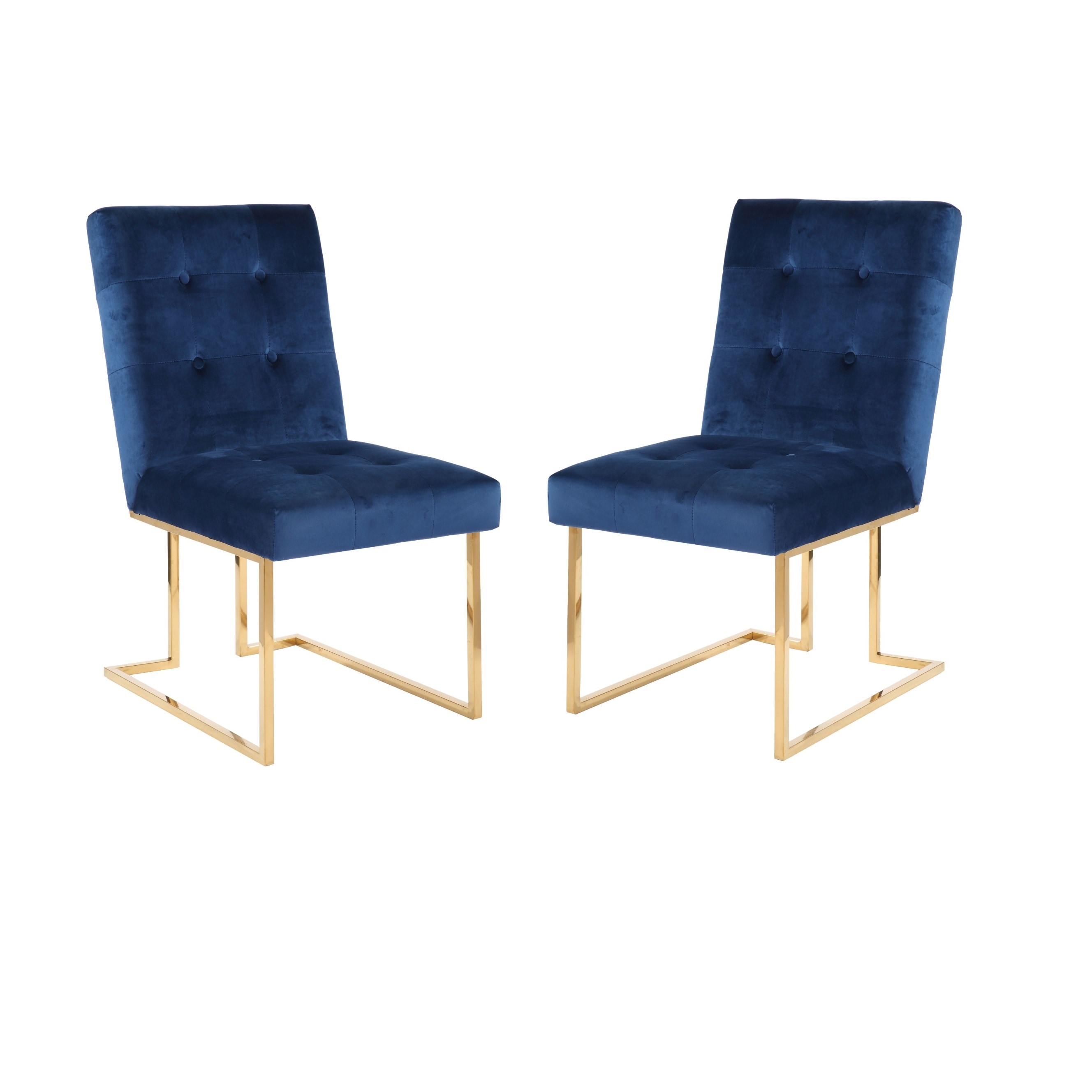 Velvet Backrest Dining Chair with Stainless Steel Legs Set of 2