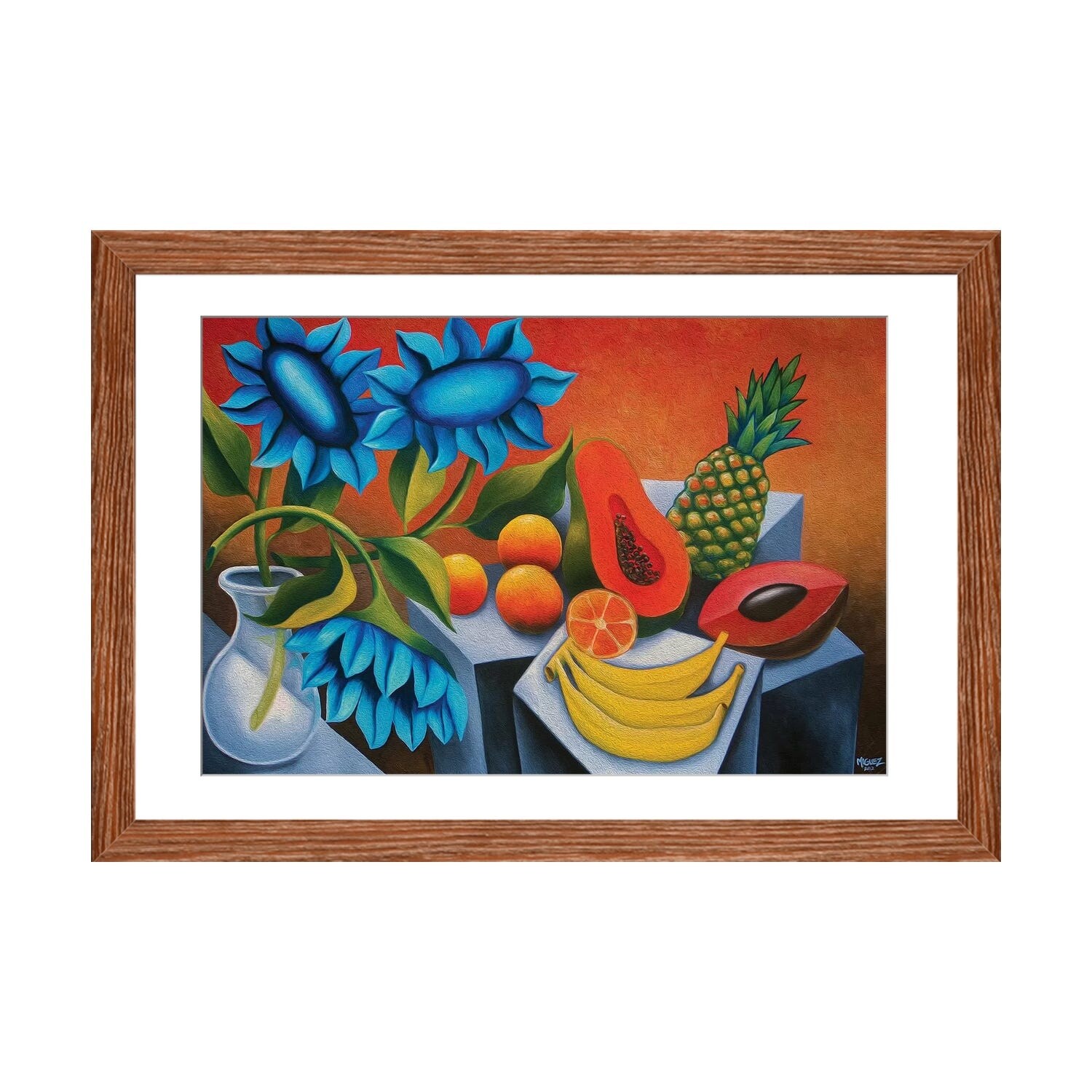 iCanvas "Fruits With Blue Flower" by Dixie Miguez Framed