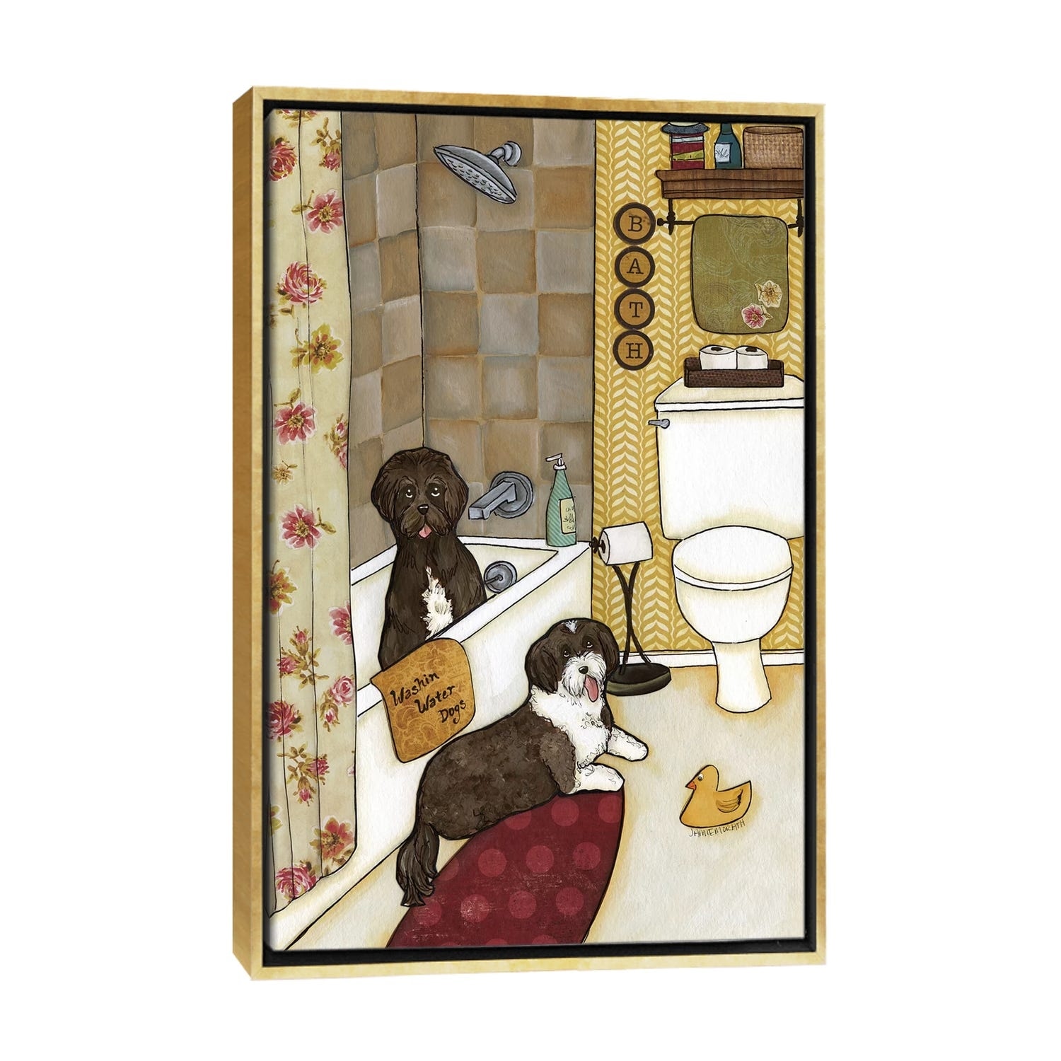 iCanvas "Tub With Dogs, Bathroom Dogs, Wash Your Paws" by Hippie Hound Studios Canvas Print