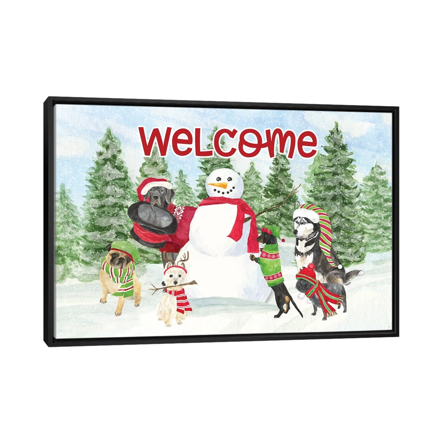 iCanvas "Dog Days of Christmas - Welcome" by Tara Reed Framed
