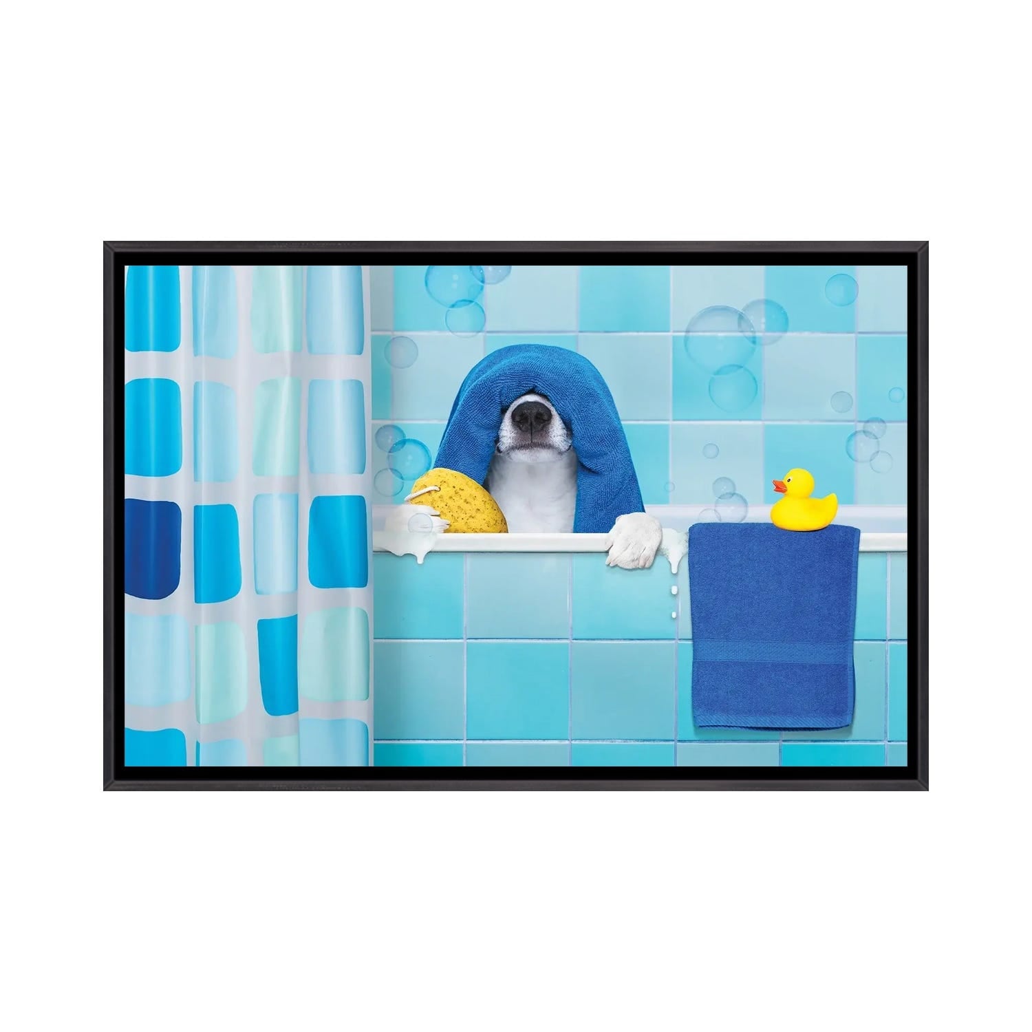 iCanvas "Dog In Shower I" by damedeeso Framed