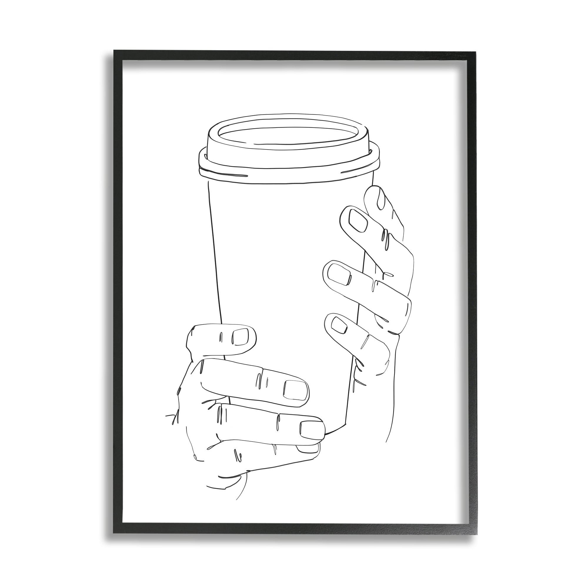 Stupell Industries Cold Hands Holding Cup Minimal Line Drawing Framed Wall Art - Black