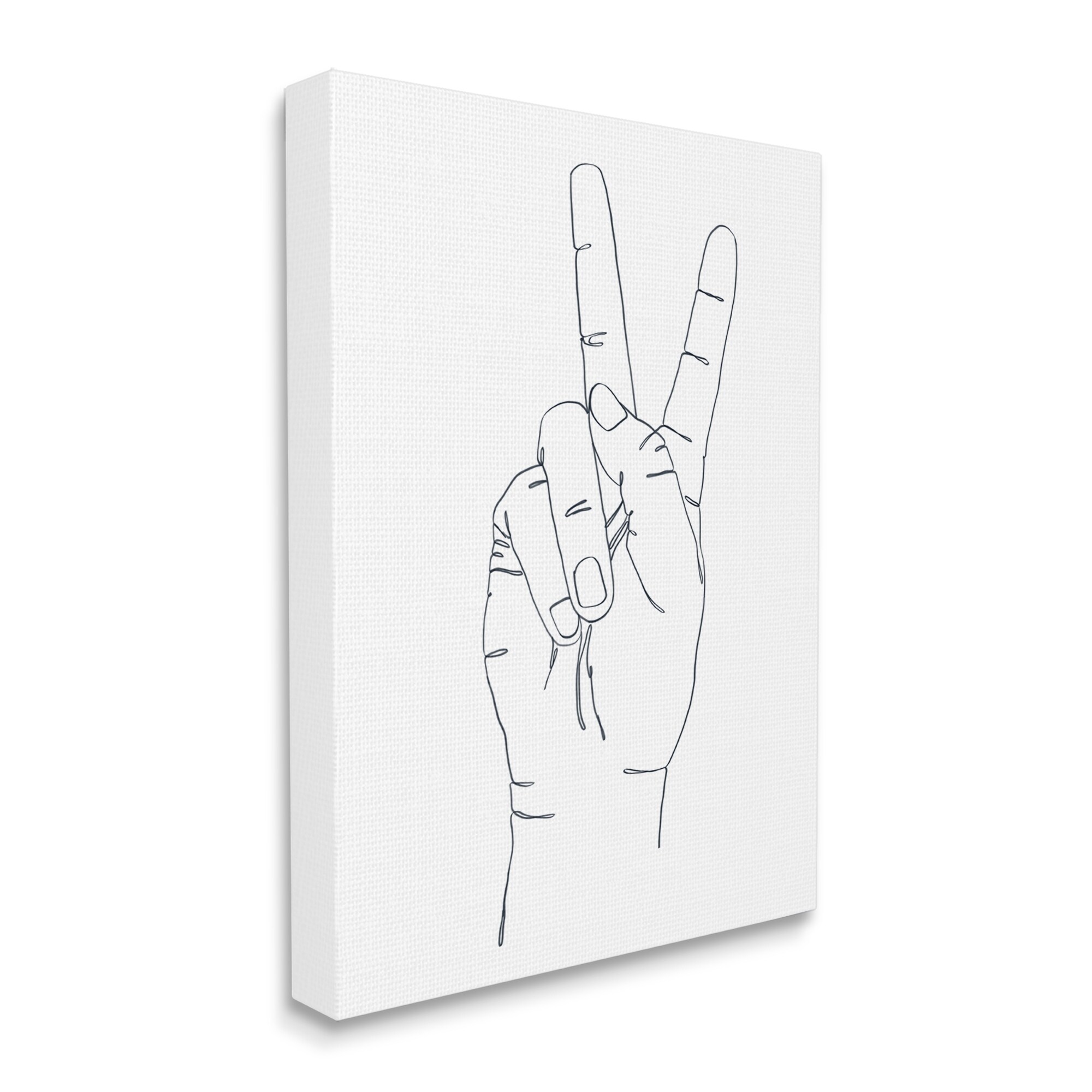 Stupell Industries Hand with Peace Sign Minimal Line Drawing Canvas Wall Art - Black