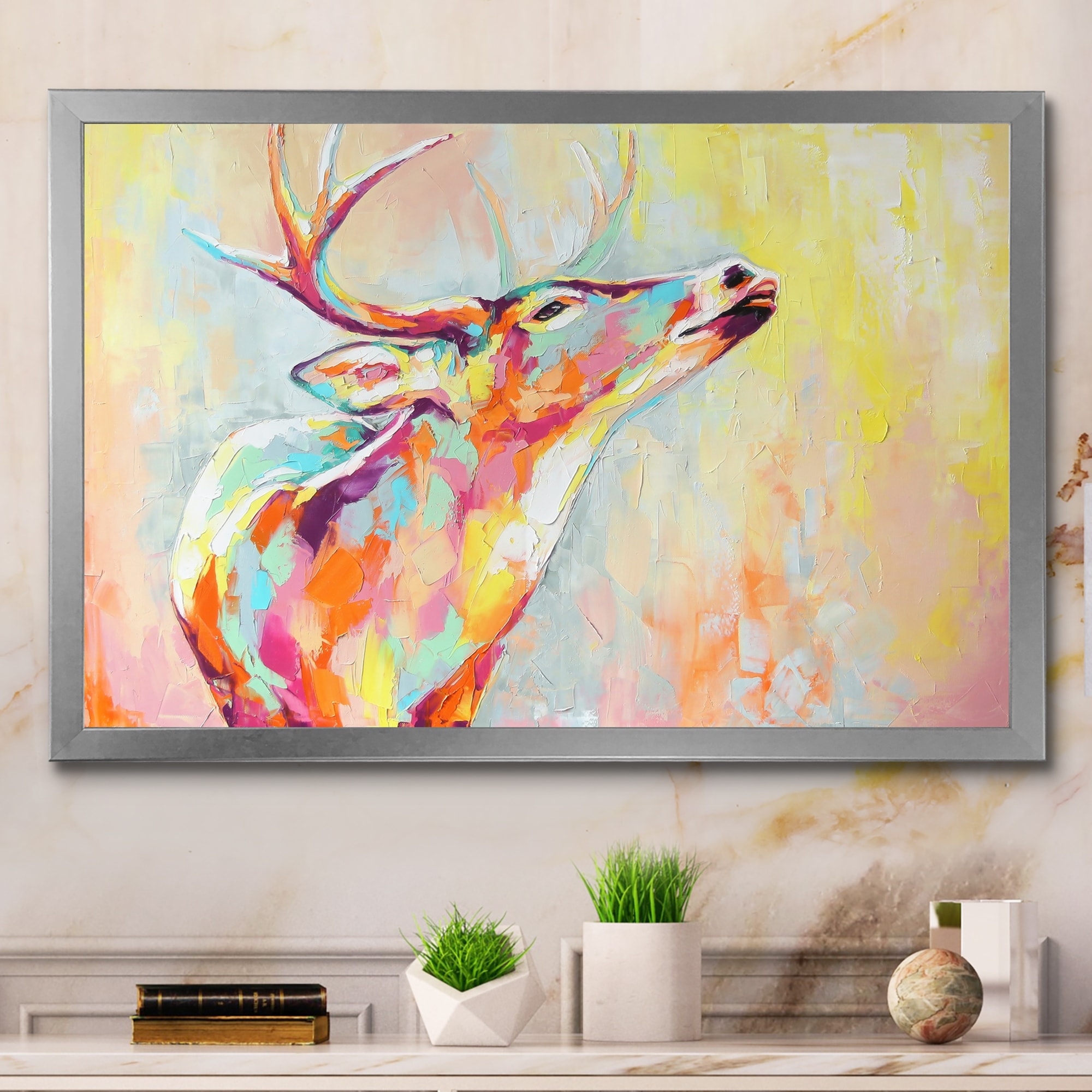 Designart "Pastel Paint Drawing of Deer Portrait" Modern Framed artwork